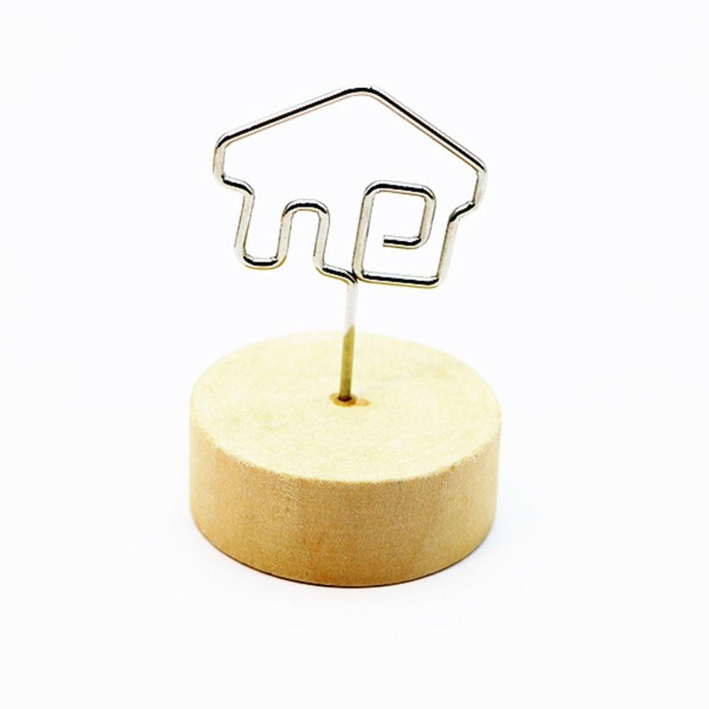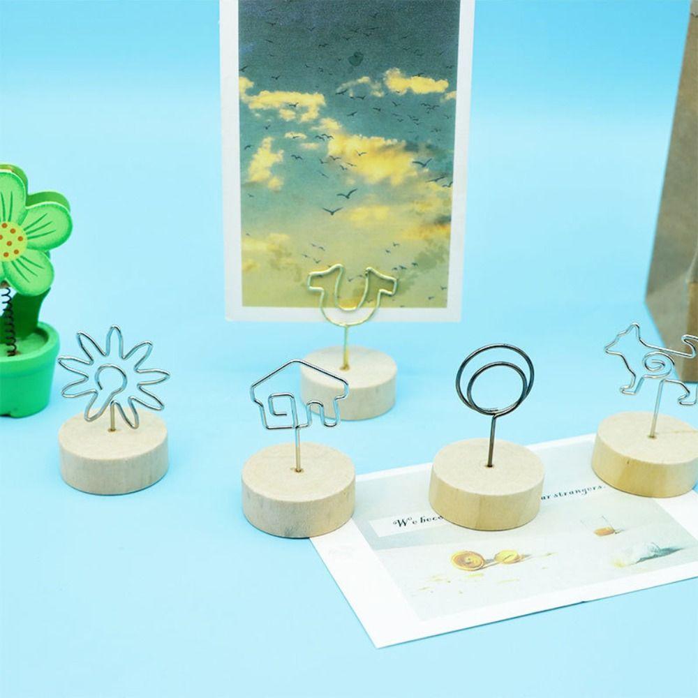Gift Memo Card Desktop Ornament Round Wooden Holder Photo Frame Picture Clip Message Left Supporter