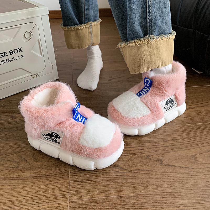 Женская зимняя теплая обувь плюшевая подкладка домашние тапочки для пары платформа каблук высокий верх зимние ботинки женские мужские домашние тапочки