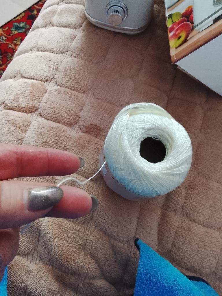Ниточка тонкая 50гр , метраж не указан, на ощупь шелковистая,приятная, буду вязать