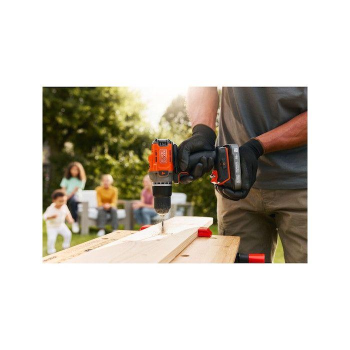 Black & Decker BCD383D1XK-QW Trapano a Percussione 18V Batteria 2Ah Arancione