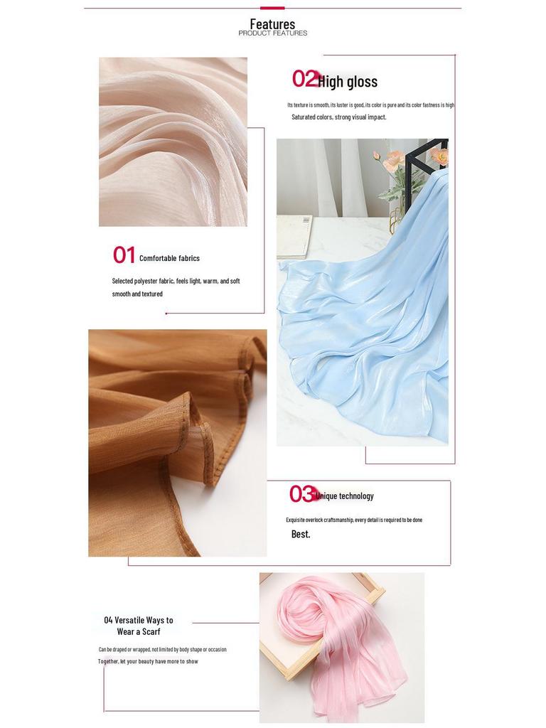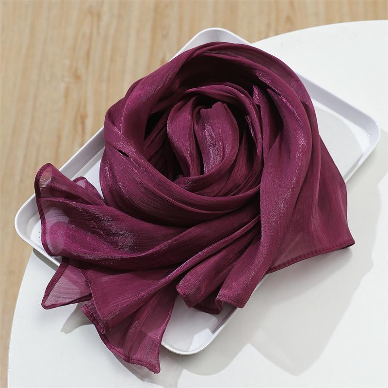 Женский шелковый шарф Весна/Лето 2025: Легкая шаль однотонной расцветки для защиты от солнца