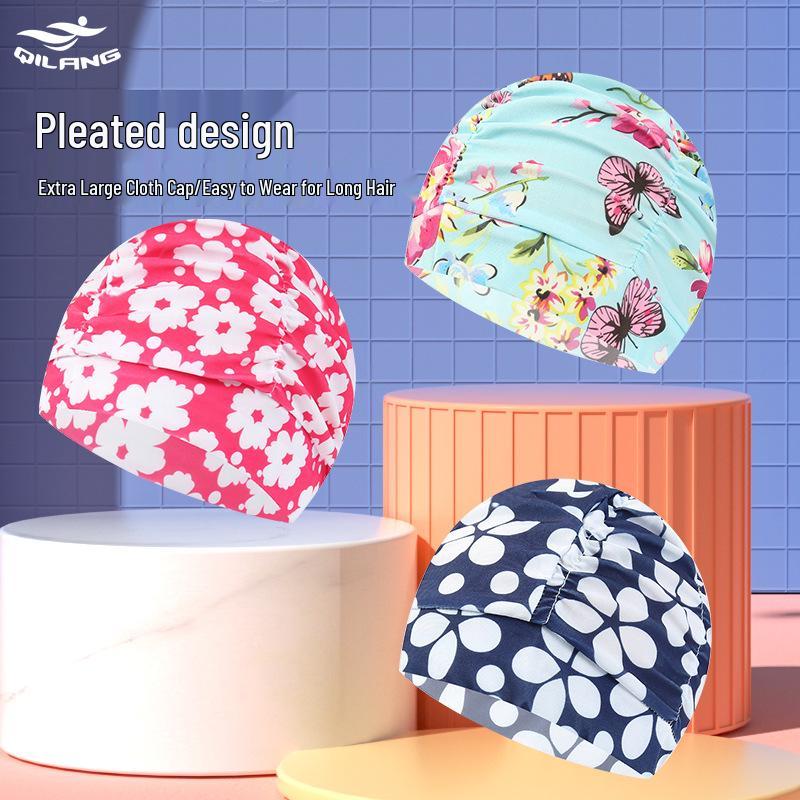 Женская купальная шапочка большого размера с цветочным плиссе - Неплотная посадка, однотонная, модный тканевый дизайн