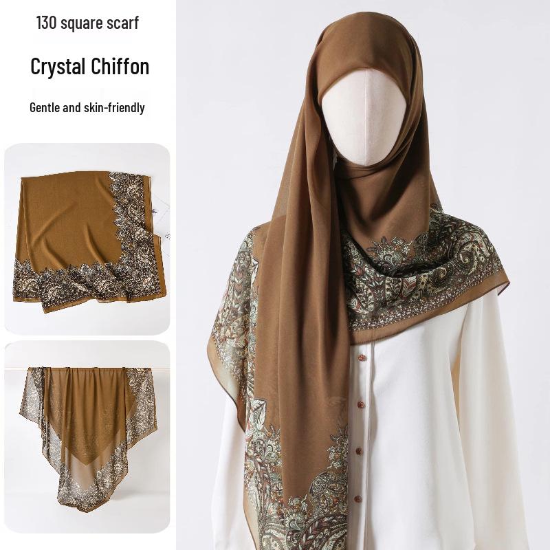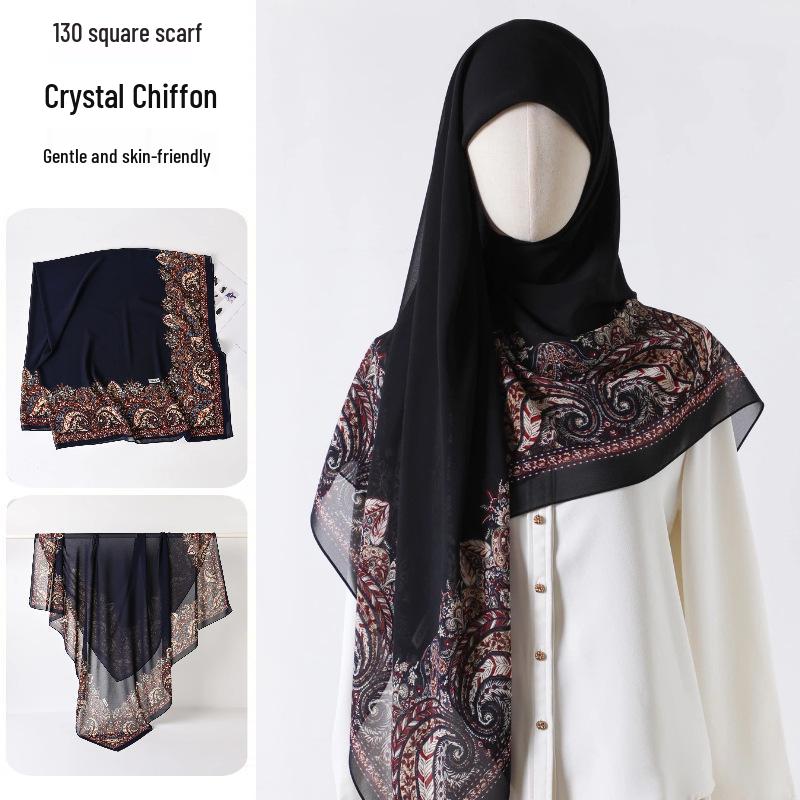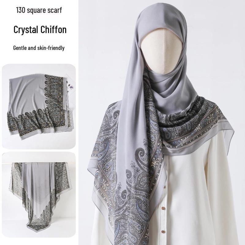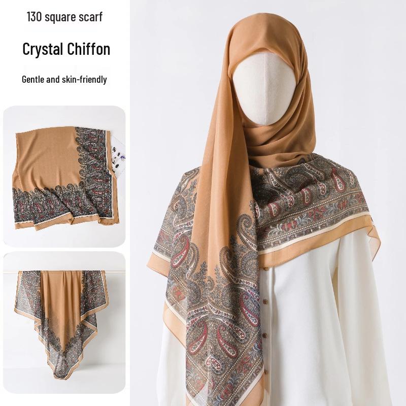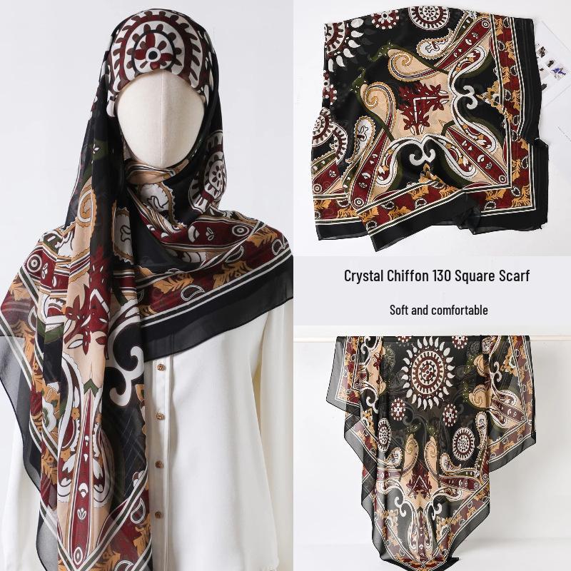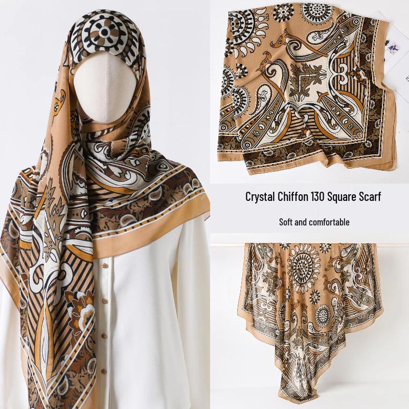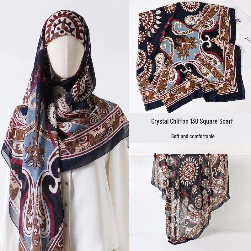 Женский модный квадратный шарф-шаль из шелковистой марли 130x130 - Высококачественный, легкий, длинный шарф