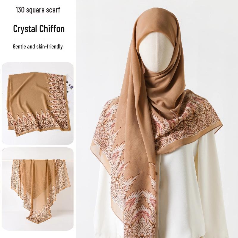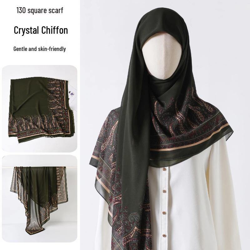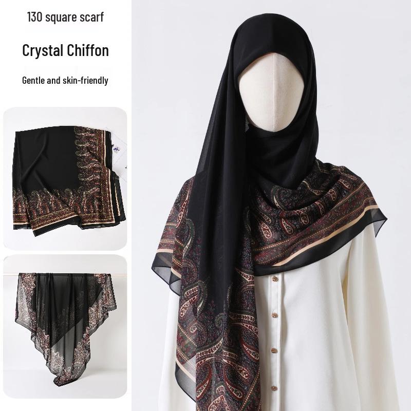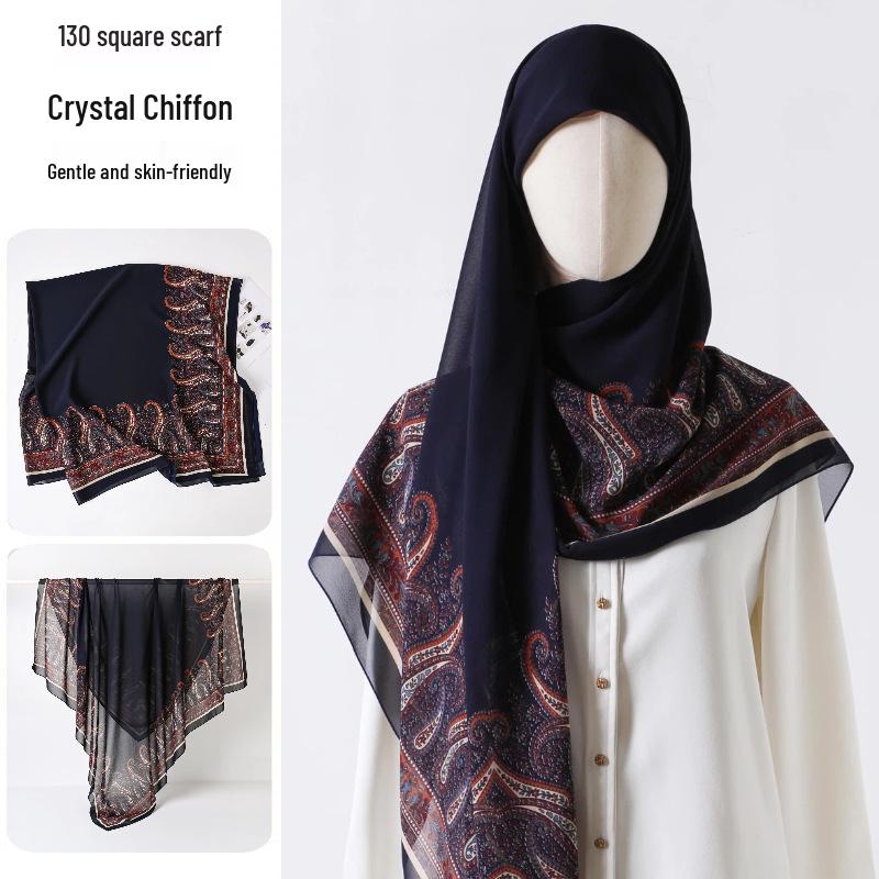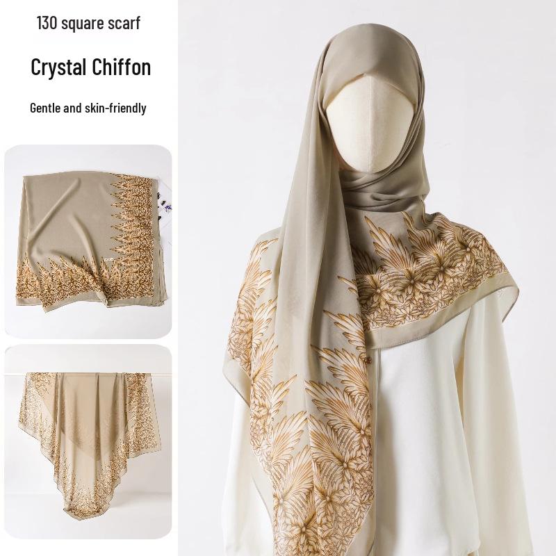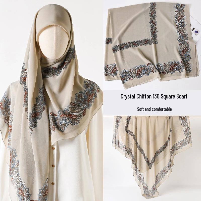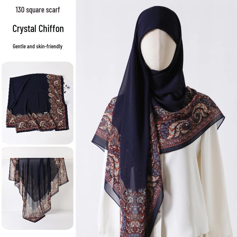 Женский модный квадратный шарф-шаль из шелковистой марли 130x130 - Высококачественный, легкий, длинный шарф
