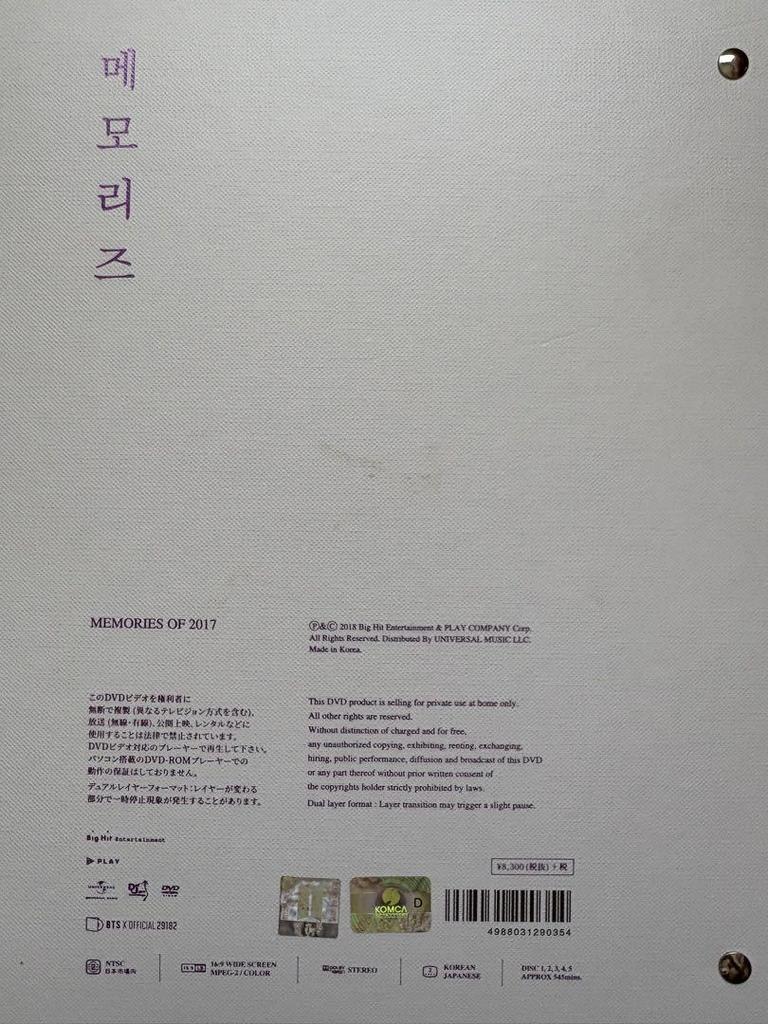 [USED] BTS MEMORIES OF 2017 DVD with JIMIN trading card