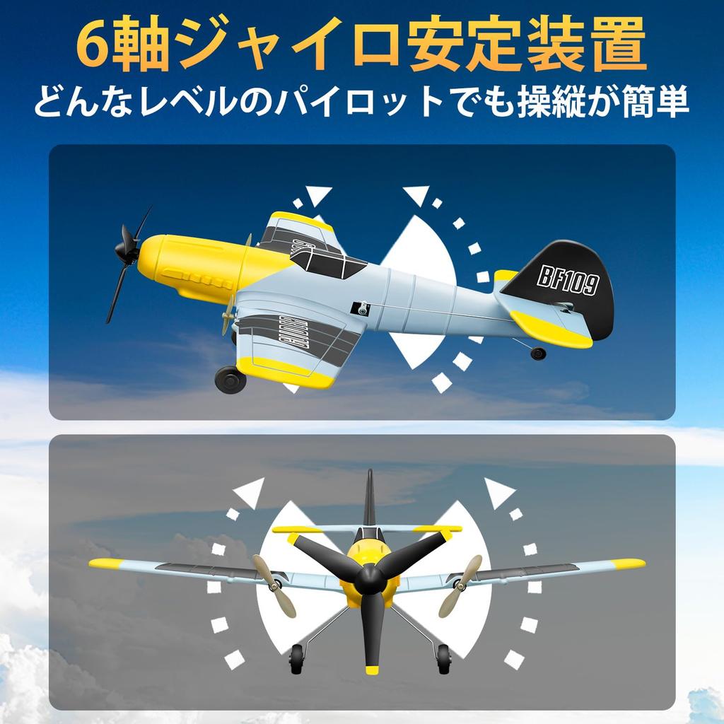 РАБОТА Радиоуправляемый самолет Радиоуправляемый самолет с гироскопом Легкий в управлении для детей и начинающих HAWK'S 3-канальный BF-109, Готовый к полету 2,4 ГГц 6-осевой стабилизатор,