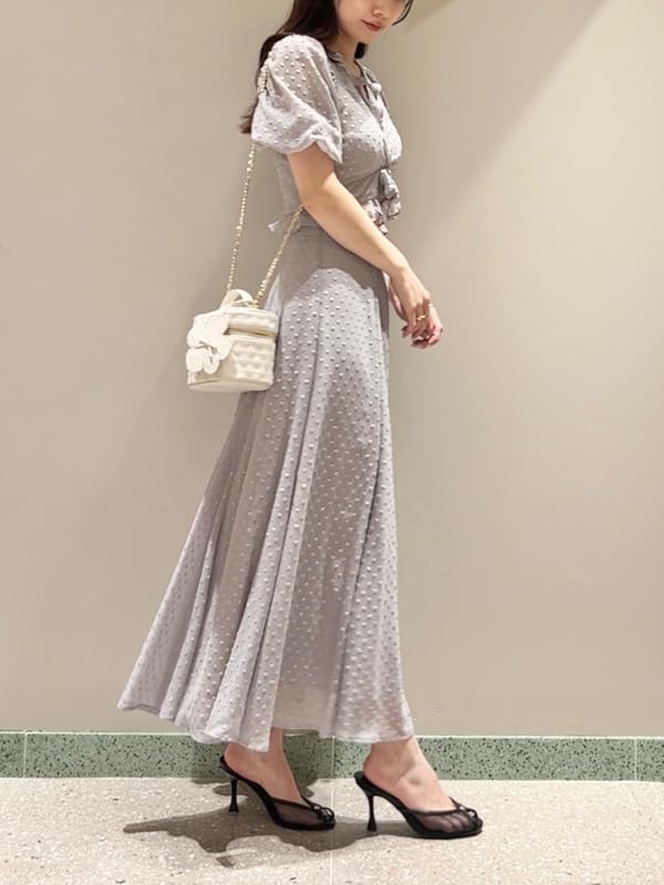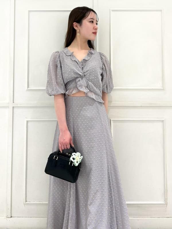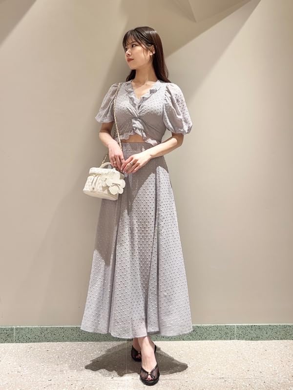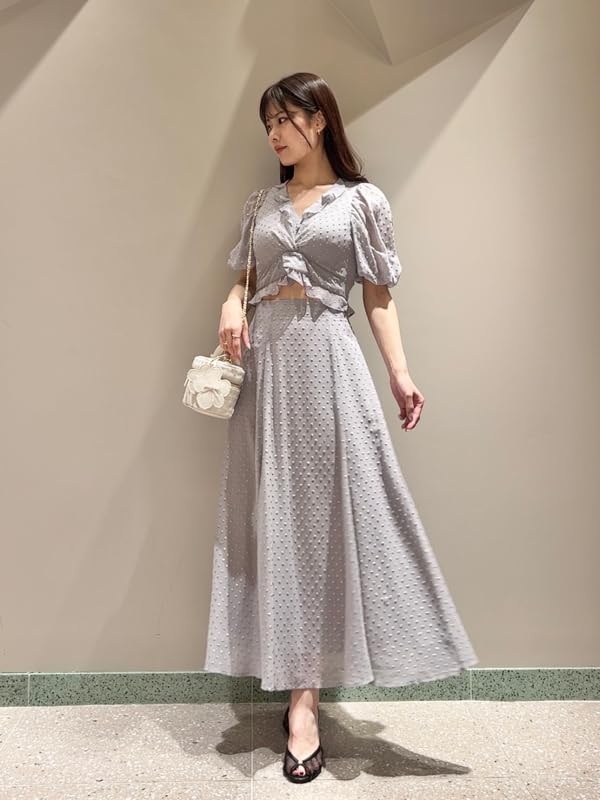 Snidel Jacquard Puff Cropped Blouse SWFB252007 GRY Women's