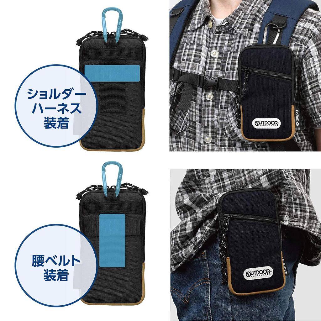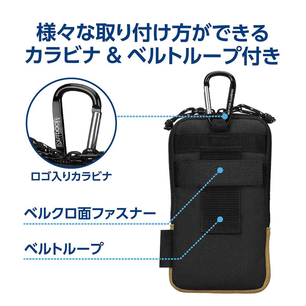 Hakuba OUTDOOR PRODUCTS Smartphone Pouch 04 Black with Carabiner and Belt Compatible with iPhone 12 PRO 8 Galaxy Galaxy Z Google Pixel Mi 11 Lite