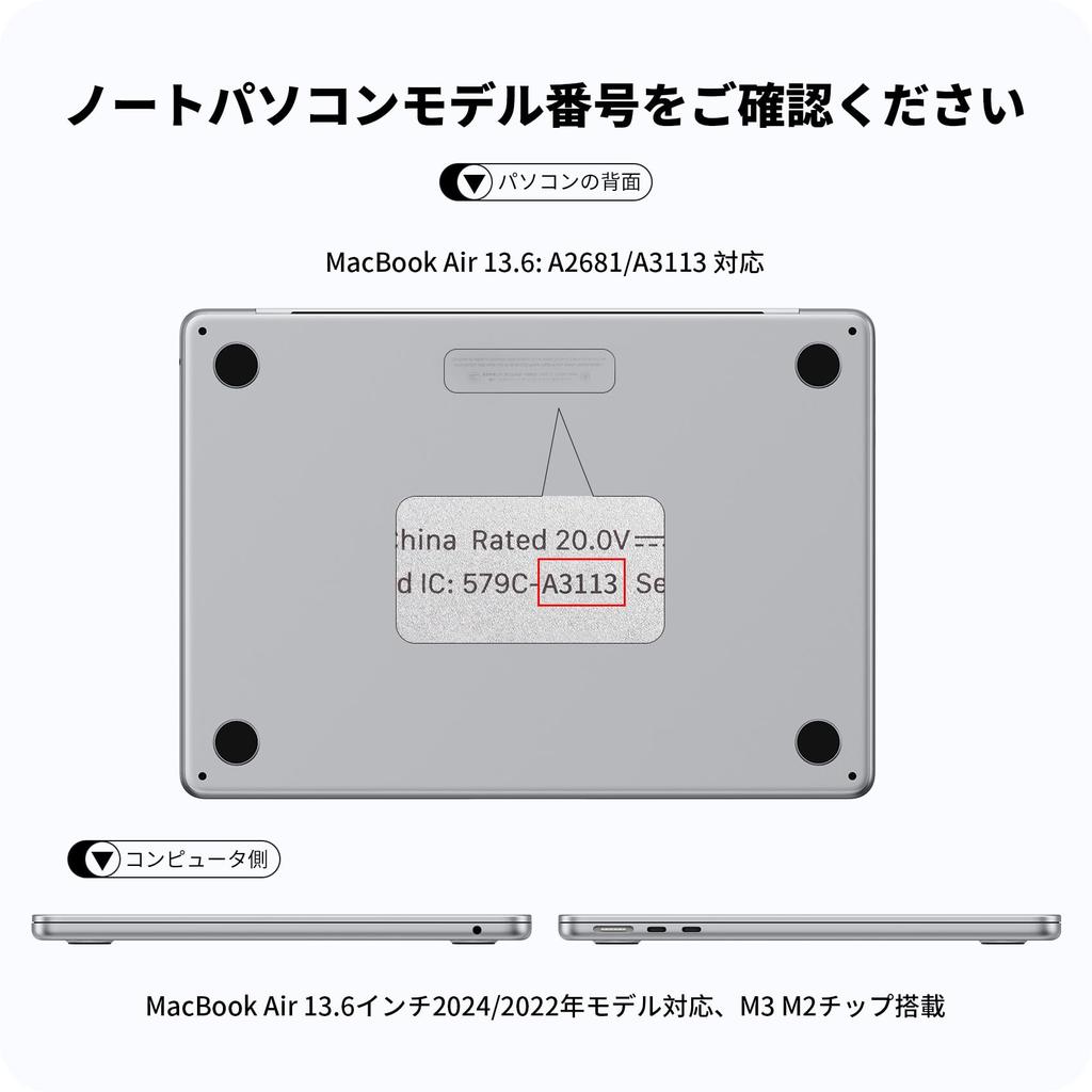 Совместимые модели: Совместим с 13,6-дюймовым MacBook Air M2 (Модель 2022 года), M3 (Модель 2024 года), и M4 (модель 2025 года). Номер модели: А2681 (Модель 2022 года) / A3113 (Модель 2024 года). (уведомление: Это несовместимо с 13-дюймовыми моделями MacBook Air 2018-2020 годов.)