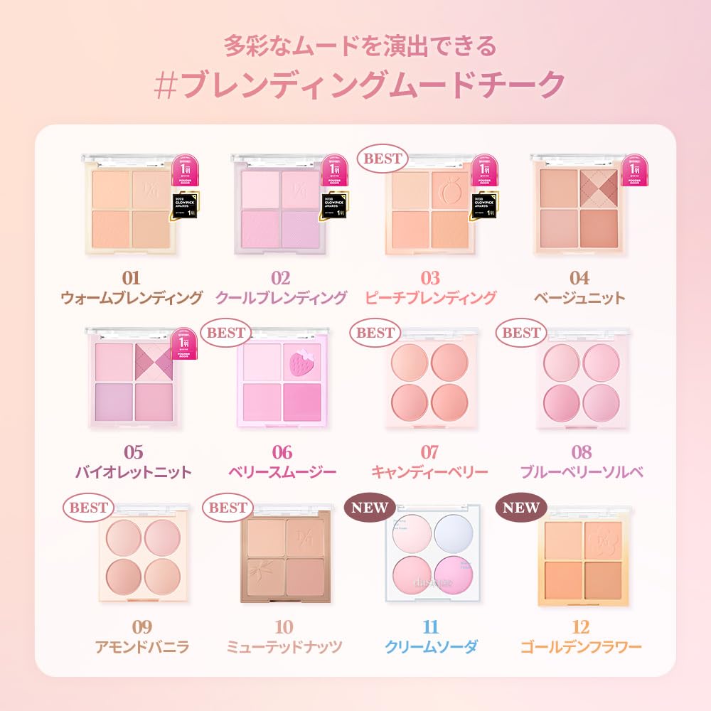 Официальная палетка румян Daisyk Blending Mood Cheek Blending Mood Palette Golden Cheek/Blusher Palette/4-цветные румяна/Теплые тона/Холодные тона/Румяна (12 цветов)