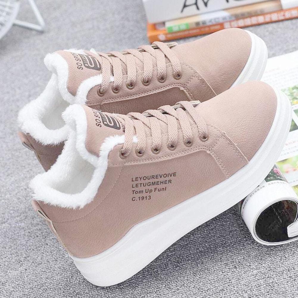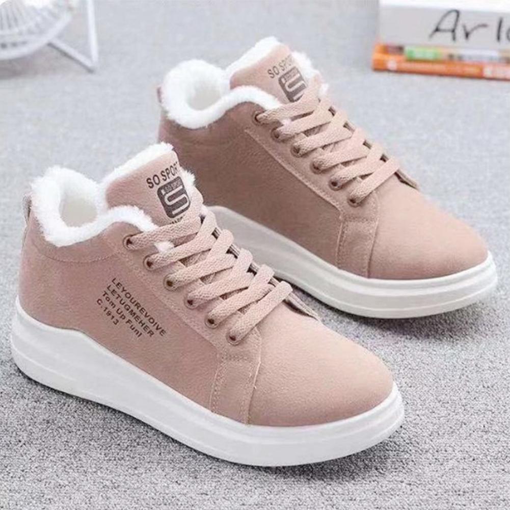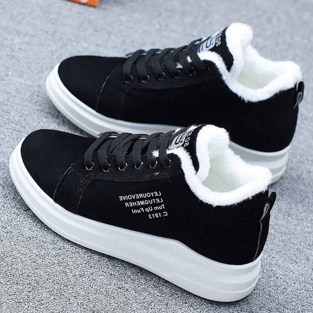 Женские Закажите на размер больше Зимние женские ботильоны Теплые плюшевые вулканизированные туфли Повседневные кроссовки для ходьбы Женские плоские туфли на шнуровке Зимние ботинки