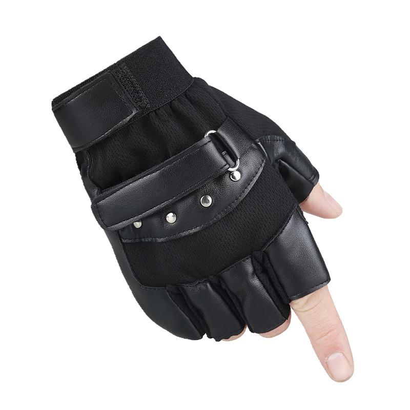 Перчатки из овчины без пальцев Мужские спортивные Нескользящие Фитнес На открытом воздухе Тактические заклепки С открытыми пальцами Для езды на мотоцикле Перчатки без пальцев
