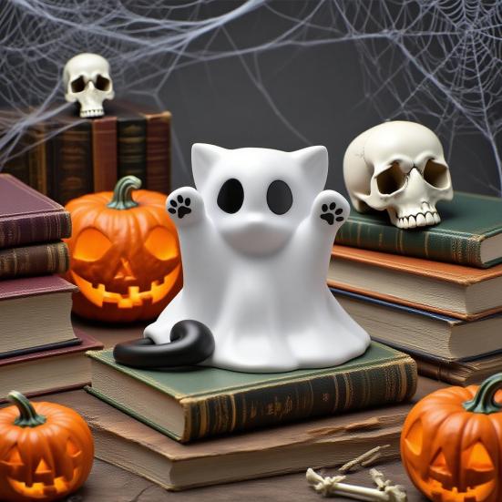 Универсальный шарм: Бесшовно сочетая призраков и милоту, эта уникальная статуэтка кота-призрака является универсальным дополнением, подходящим для украшения как дома, так и офиса в сезон Хэллоуина.