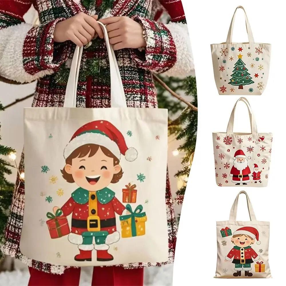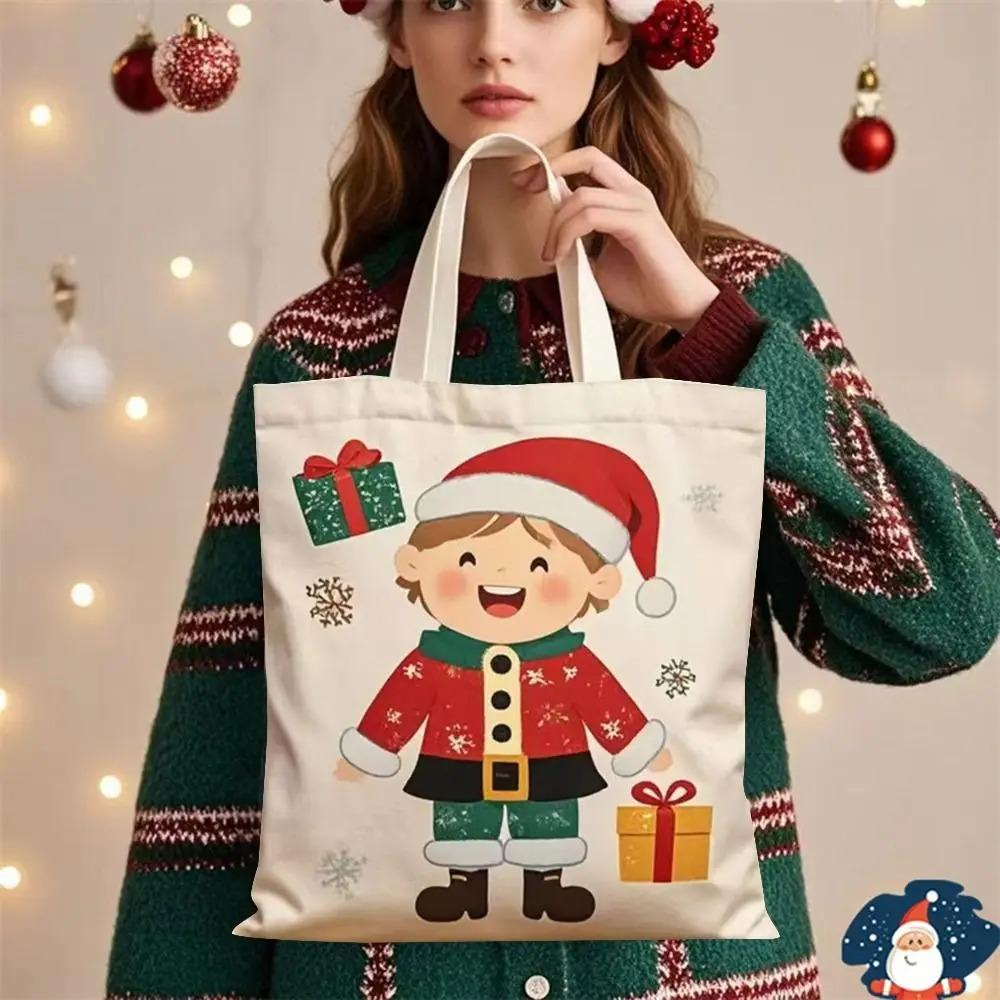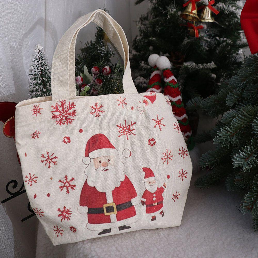 Cartoon Christmas Canvas Gift Bag Santa Claus Merry Christmas Decor Party Favors