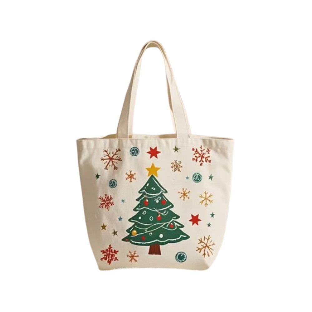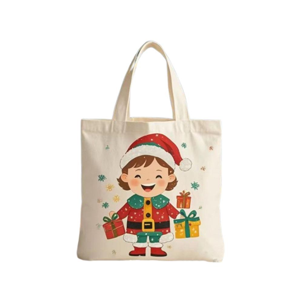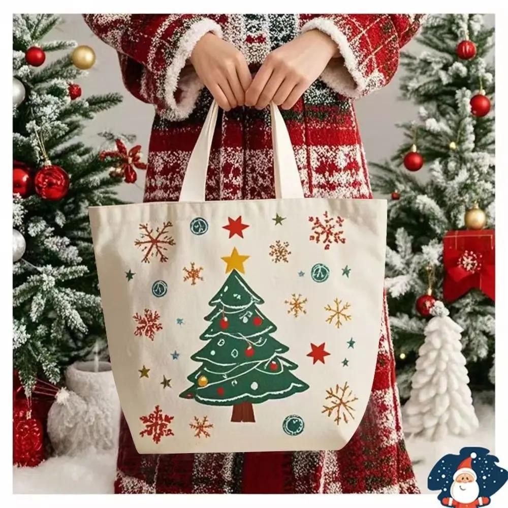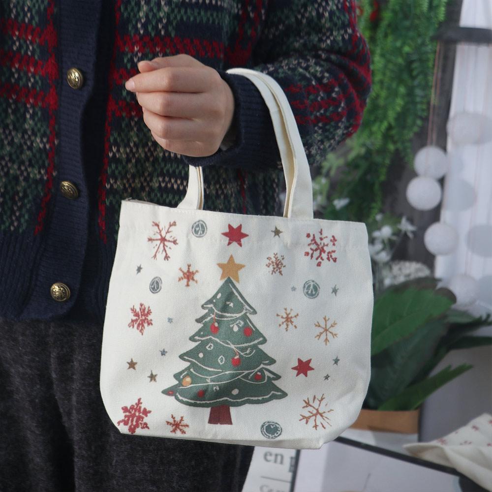 Cartoon Christmas Canvas Gift Bag Santa Claus Merry Christmas Decor Party Favors