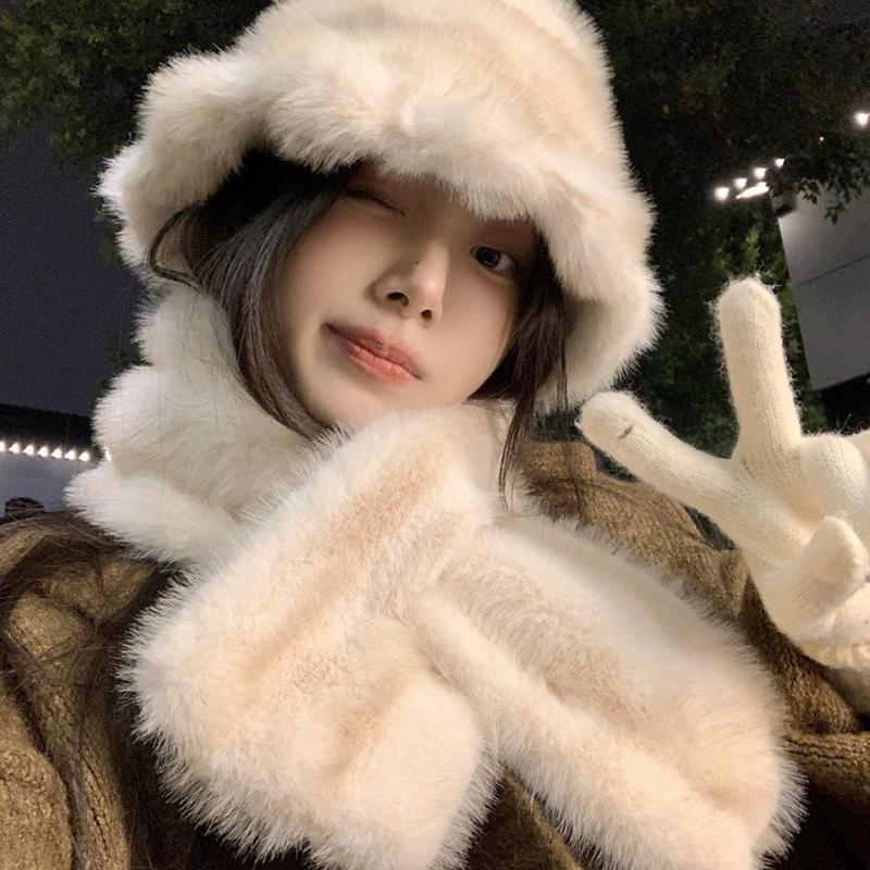 Женская зимняя плюшевая шапка и манишка из двух частей, пушистый искусственный мех норки, универсальный, утолщенный, морозостойкий, теплый
