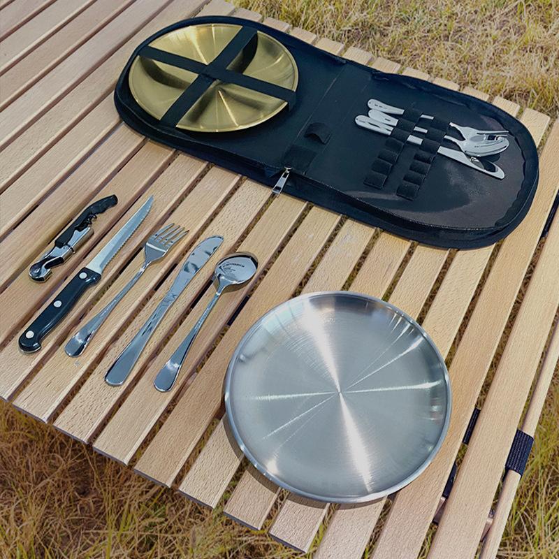 Набор столовых приборов для кемпинга из нержавеющей стали, дорожная сумка-тоут для кемпинга и пикника, набор посуды для улицы