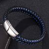 Панк-мужские ювелирные изделия, черный, синий, красный, плетеный кожаный браслет с застежкой из нержавеющей стали, мужской браслет на запястье, подарки