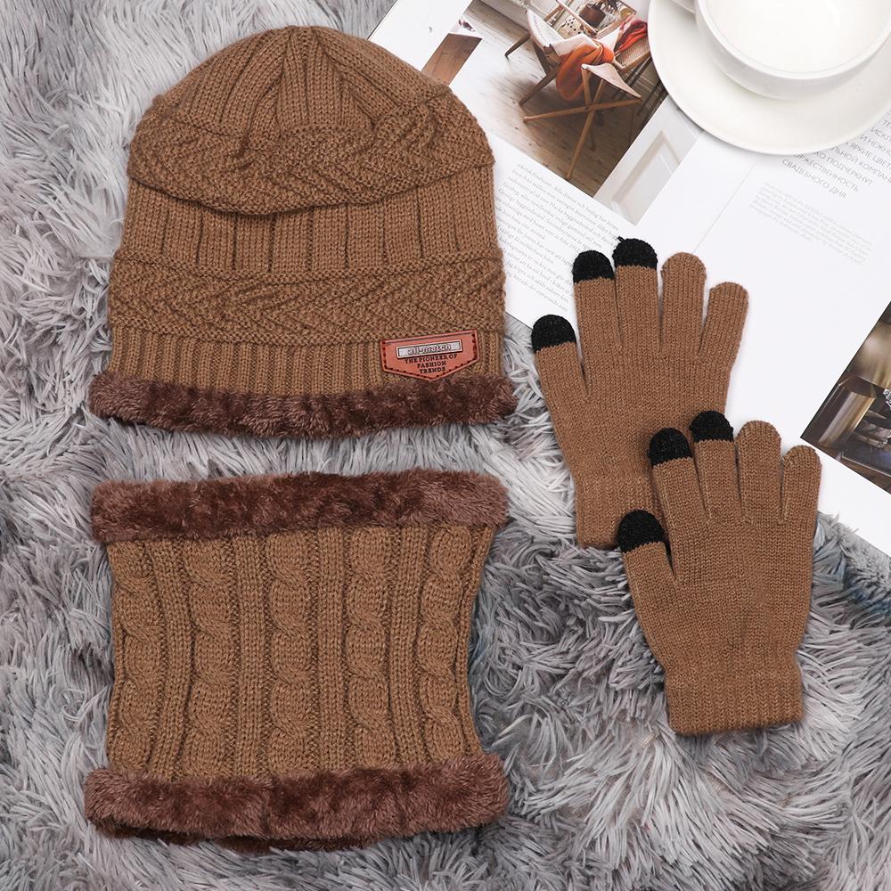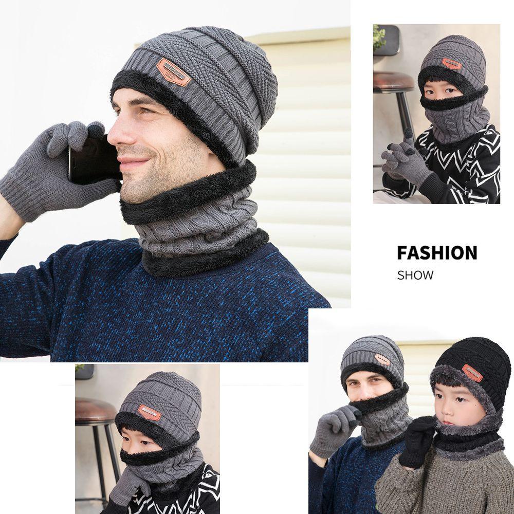 Набор перчаток с сенсорным экраном, зимний теплый шарф-манишка, шапка-бини и шарф для шеи, набор шапка-шарф-перчатки