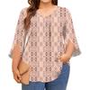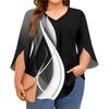 Женские топы с принтом, V-образным вырезом, больших размеров, с рукавами 3/4, элегантные рубашки