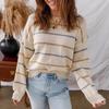 Женский повседневный пуловер в цветную полоску с длинным рукавом и свободным кроем