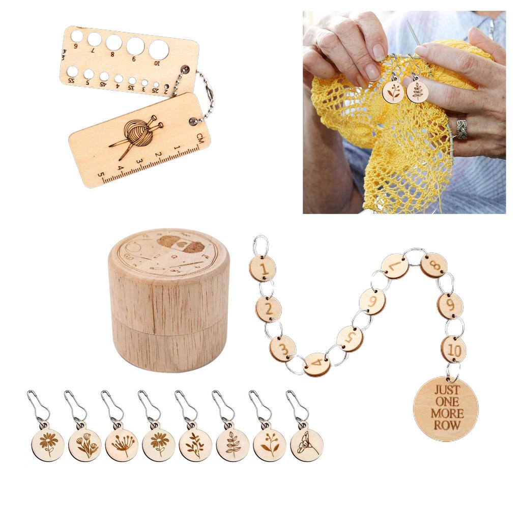 Круглый шарм Деревянные стежки Маркер для блокировки с булавкой-застежкой Деревянная линейка-калибр для вязания, ткачества, шитья, рукоделия