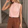 Женский модный повседневный топ с драпировкой, маленьким вырезом горловины, однотонный, без рукавов