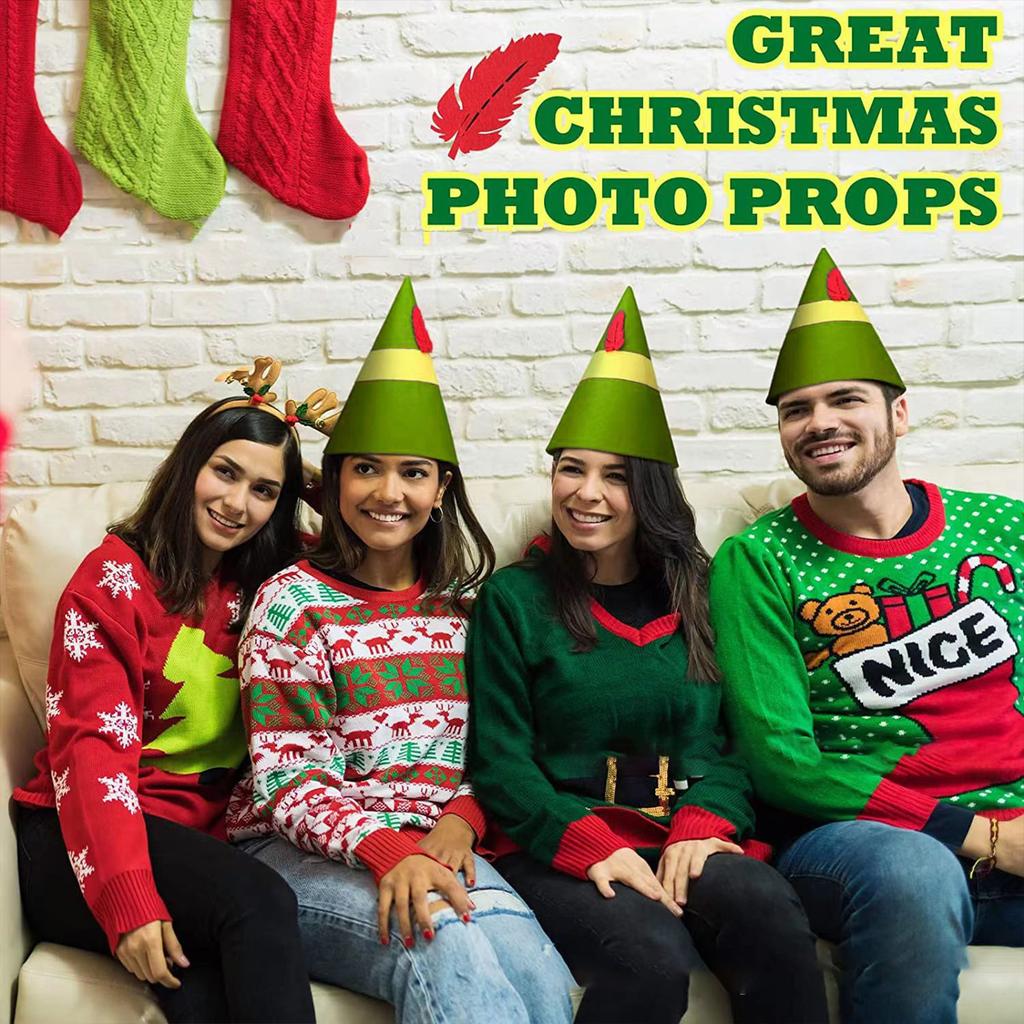 Рождественская шляпа эльфа с пером, красная и зеленая конусная шляпа для рождественских вечеринок, маскарадных костюмов, косплей-аксессуары