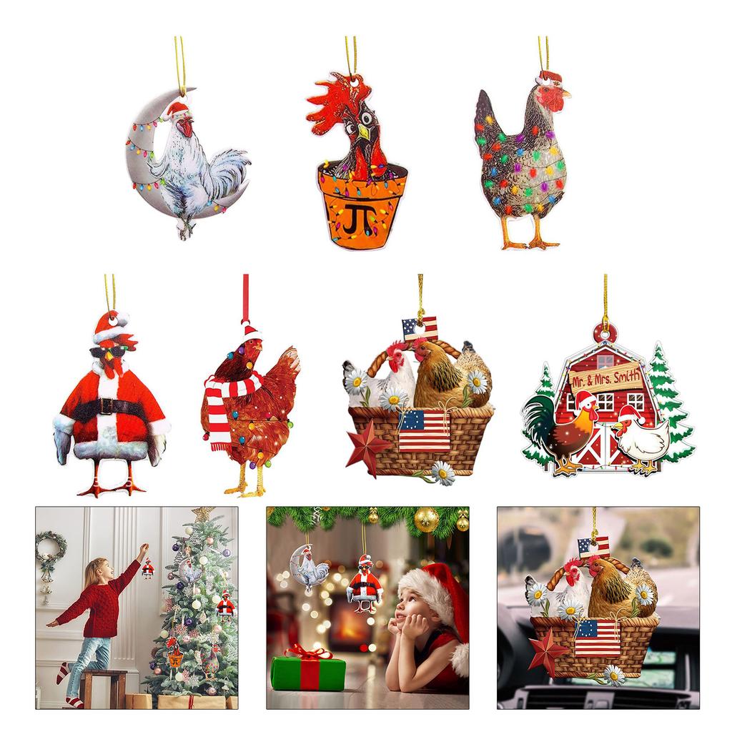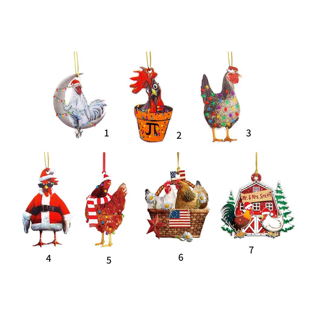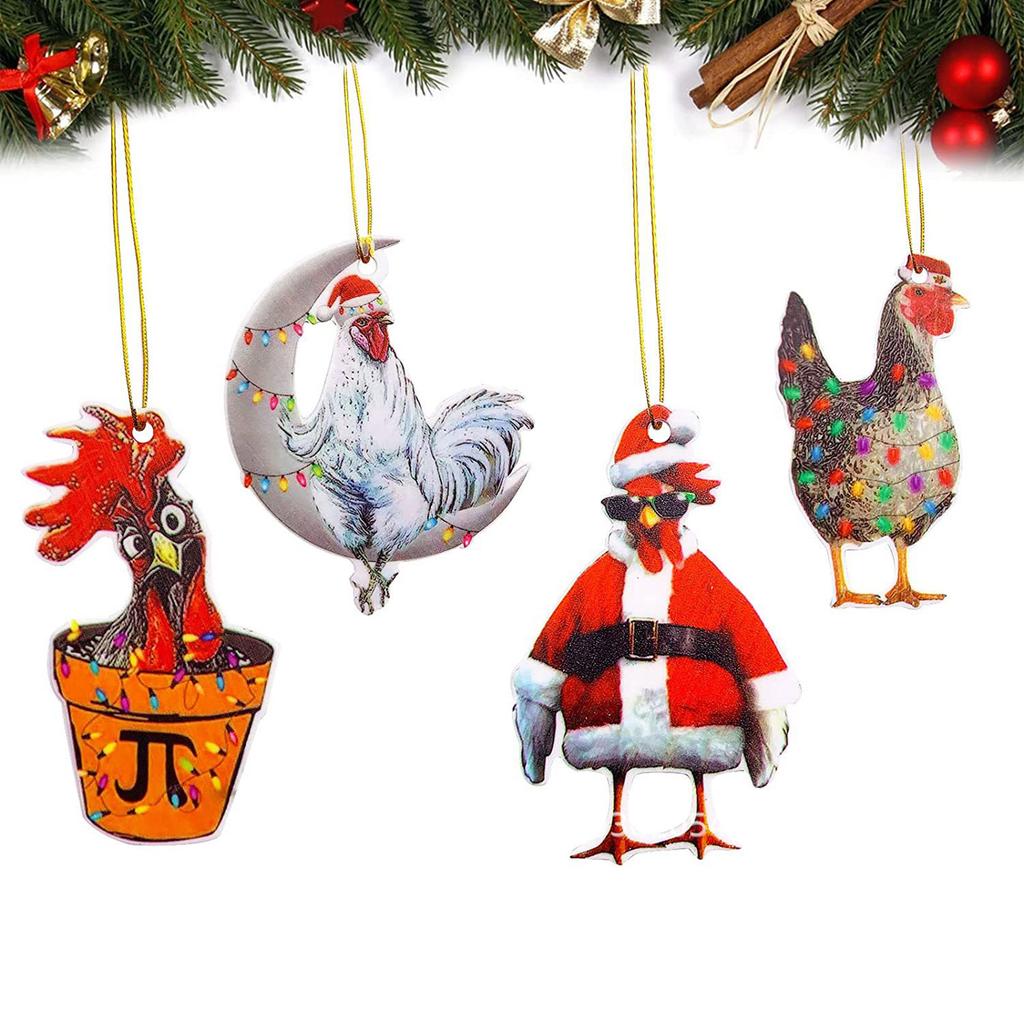 Забавный акриловый рождественский цыпленок, украшение на елку, мультяшное животное, подвесной автомобиль, праздничный новогодний подарок