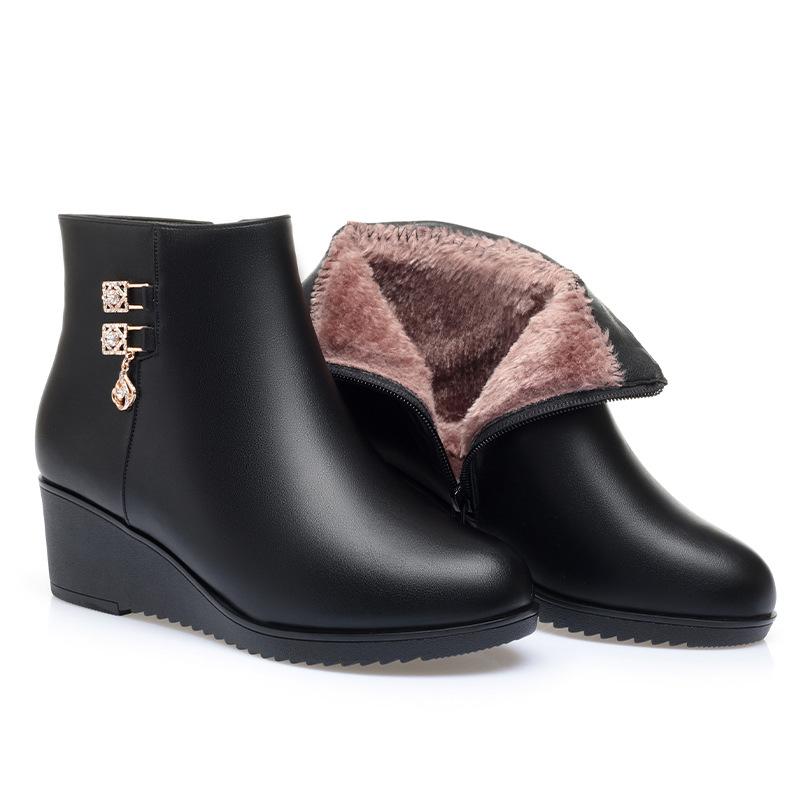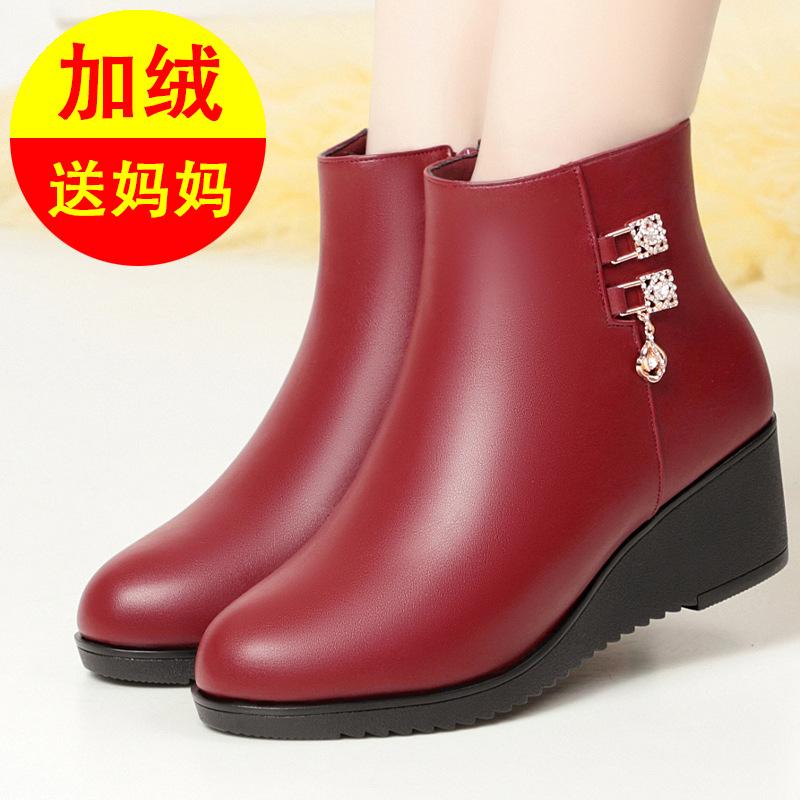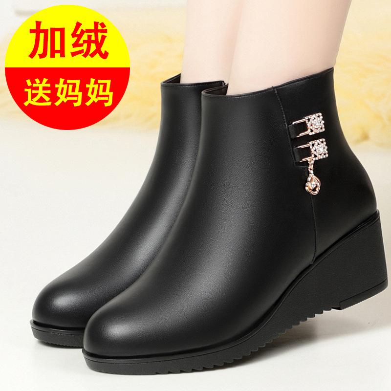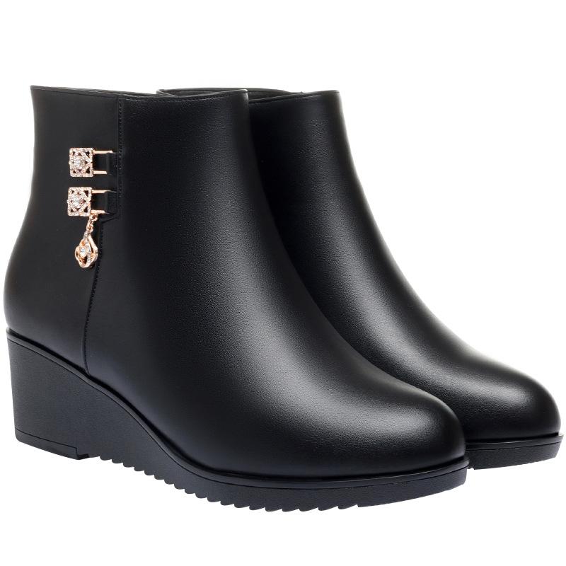 Нескользящая мягкая подошва клиновидный каблук хлопковая обувь увеличивающая рост женские кожаные туфли бархатные осенне-зимние плоские короткие ботинки