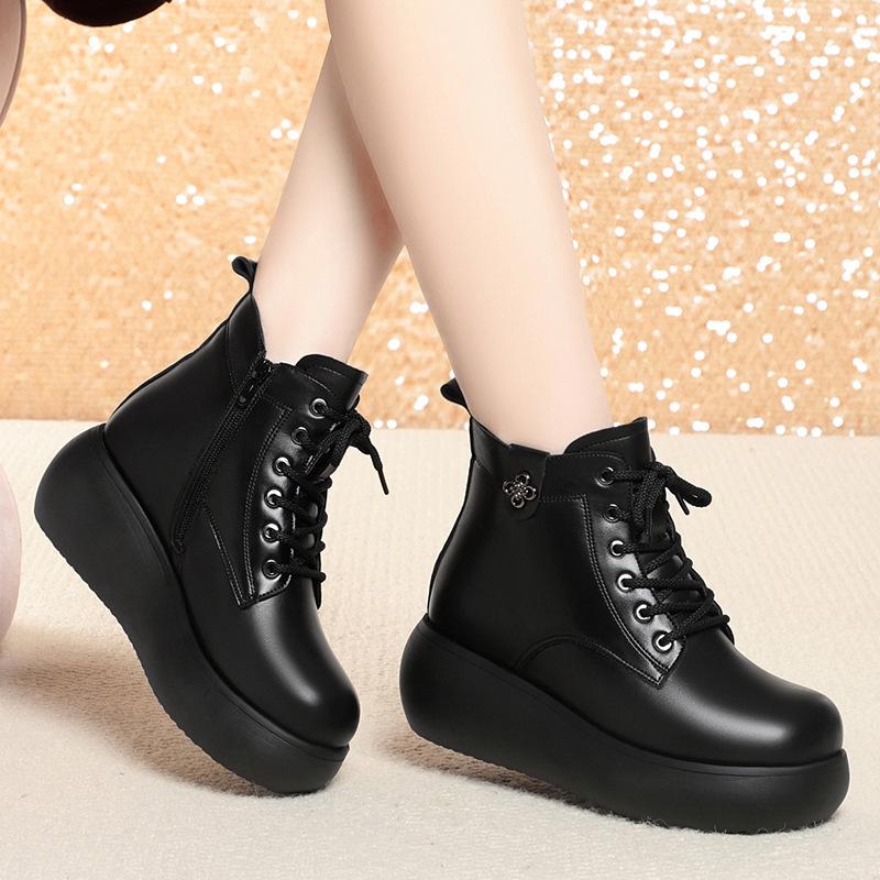 Ботинки Мартин на толстой подошве женские весенне-осенние короткие ботинки флисовые кожаные туфли подошва маффин туфли для мамы осенне-зимние ботинки