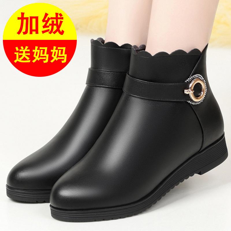 R короткие ботинки на флисе и теплые кожаные туфли на мягкой подошве женские осенне-зимние универсальные женские ботинки на низком каблуке на плоской подошве