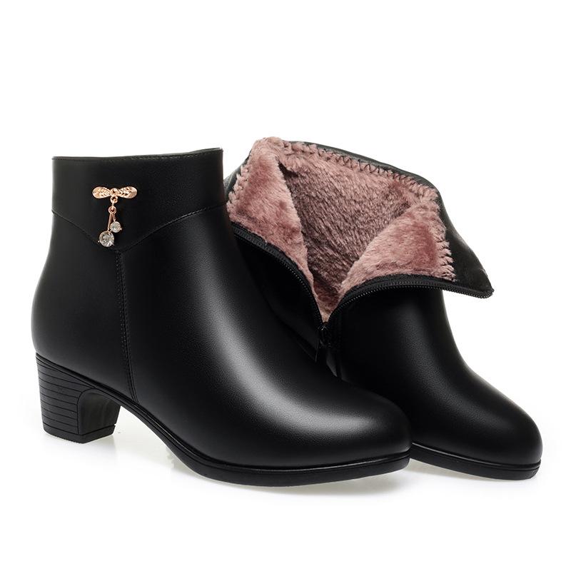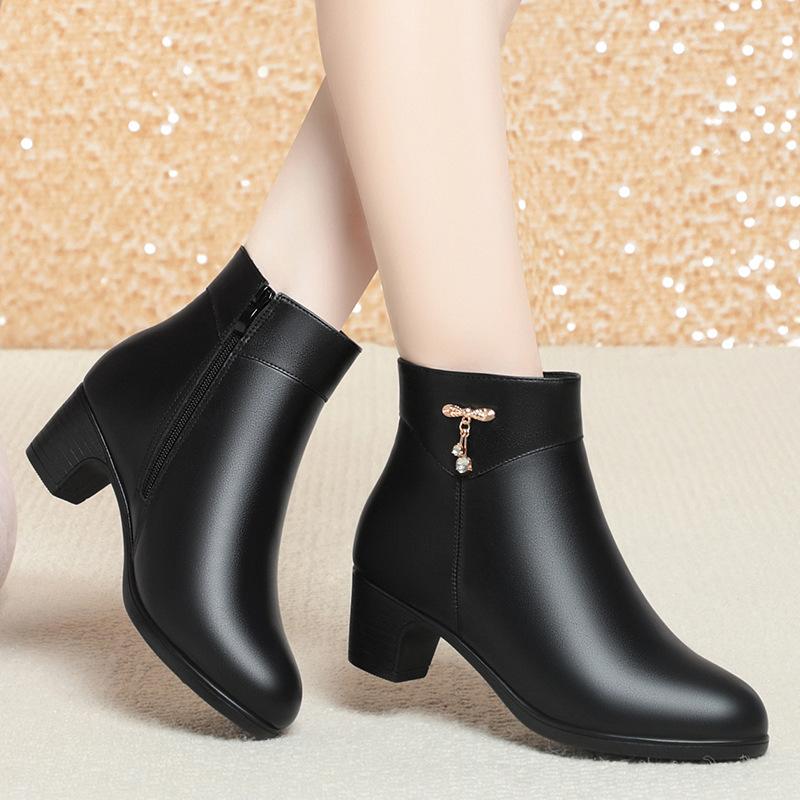 Материнская обувь осенне-зимние короткие ботинки женские ботинки на среднем каблуке флисовая кожаная обувь толстый каблук хлопковая обувь зимняя обувь для пожилых одинарные ботинки