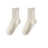 Женские носки до середины икры кремового цвета на шнуровке, весенне-летние из чистого хлопка в японском стиле с оборками, осенне-весенние короткие носки
