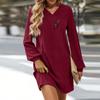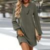 Женское осенне-зимнее вязаное платье-туника, повседневное платье с длинным рукавом, V-образным вырезом и пуговицами, свободного кроя, с карманом