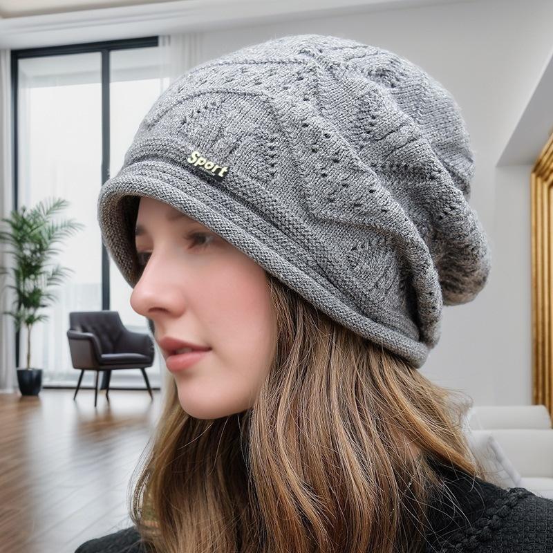 Вязаные шерстяные шапки для осени и зимы, женские, для защиты ушей, теплые, шапки-конфайны, модные, универсальные, для большого обхвата головы, шапки-бини
