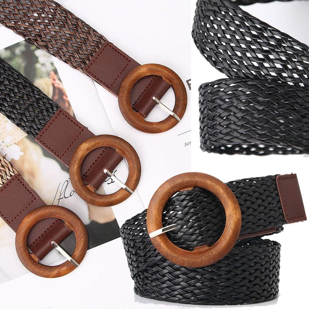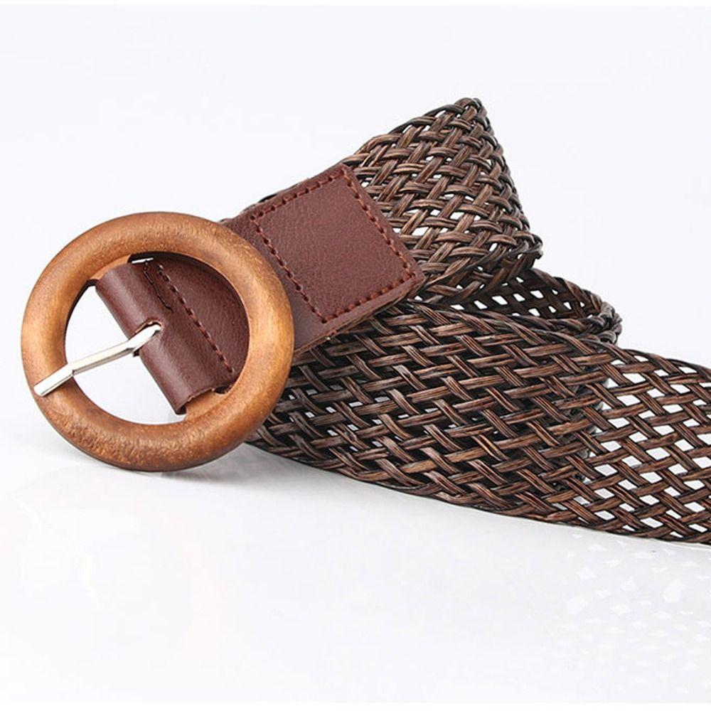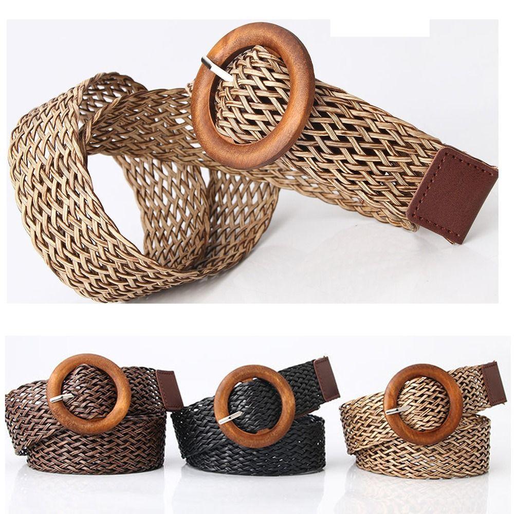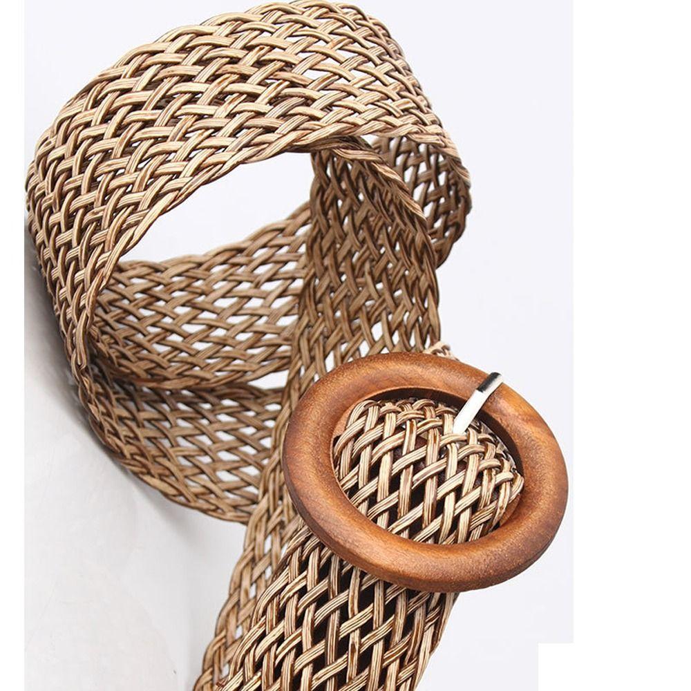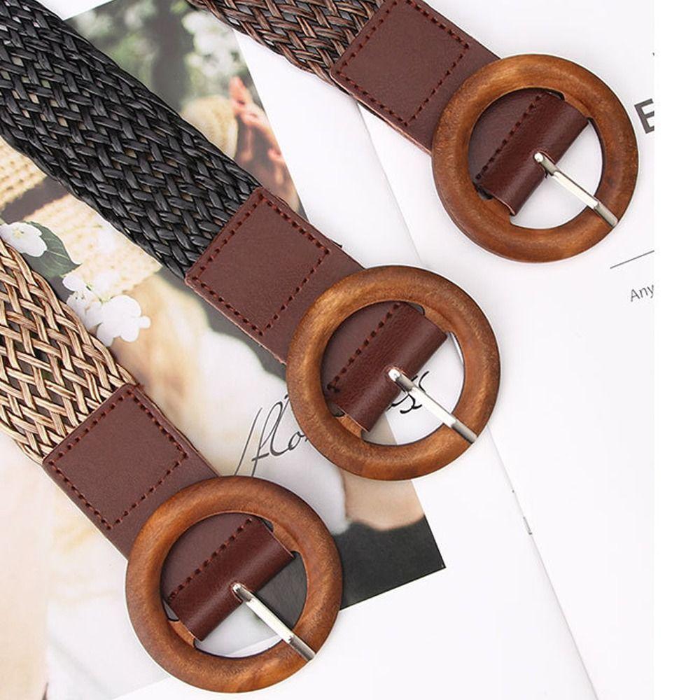Wild Braided Wooden Buckle Waistband Ladies Dress Cummerbands Weave Waist Band Bohemian Wide Belt