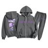 Детская мода Толстовка с капюшоном на молнии с длинными рукавами и спортивные штаны Однотонный комплект толстовки с карманами