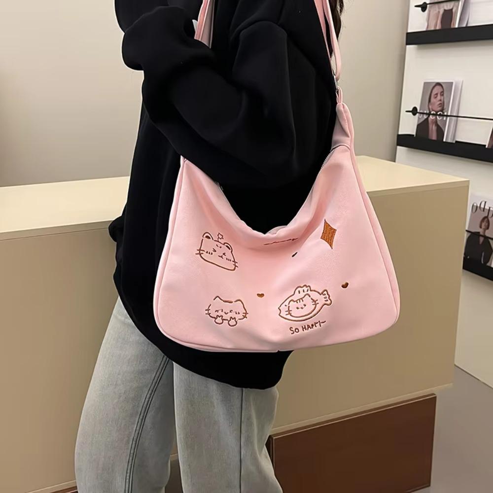 Новая модная сумка-мессенджер через плечо, вышивка, мультяшная сумка для поездок на работу, милая сумка на плечо с котиком, для путешествий