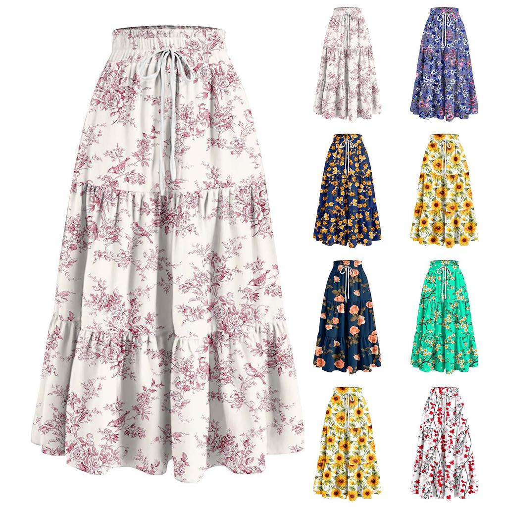 Женская весенняя повседневная длинная юбка с оборками, однотонная юбка, ретро-юбка в складку — купить товар онлайн с бесплатной доставкой до всему миру!