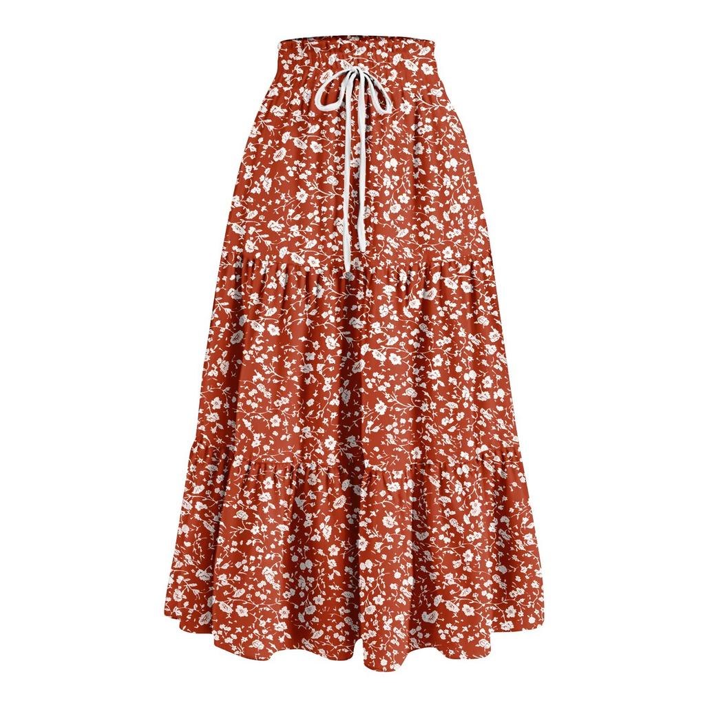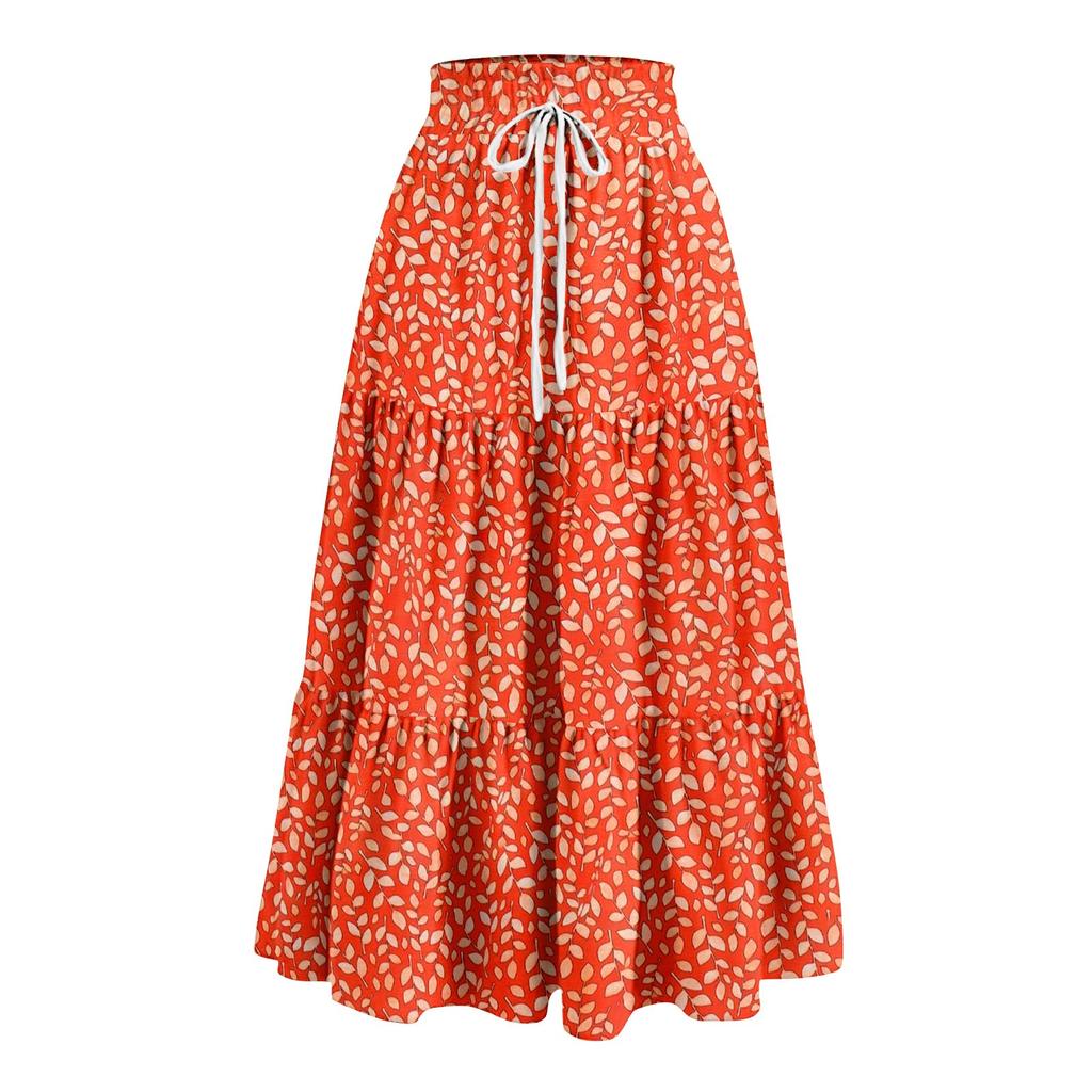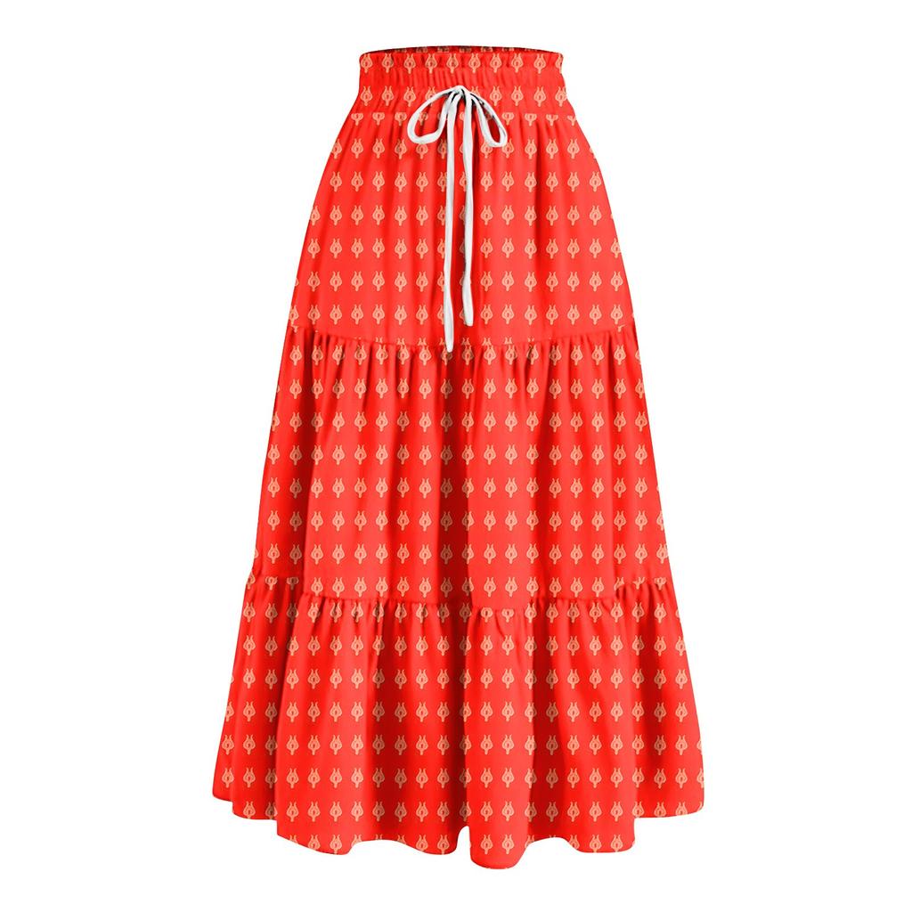 Женская весенняя повседневная длинная юбка с оборками, однотонная юбка, ретро-юбка в складку