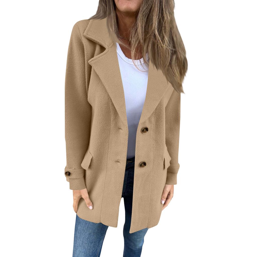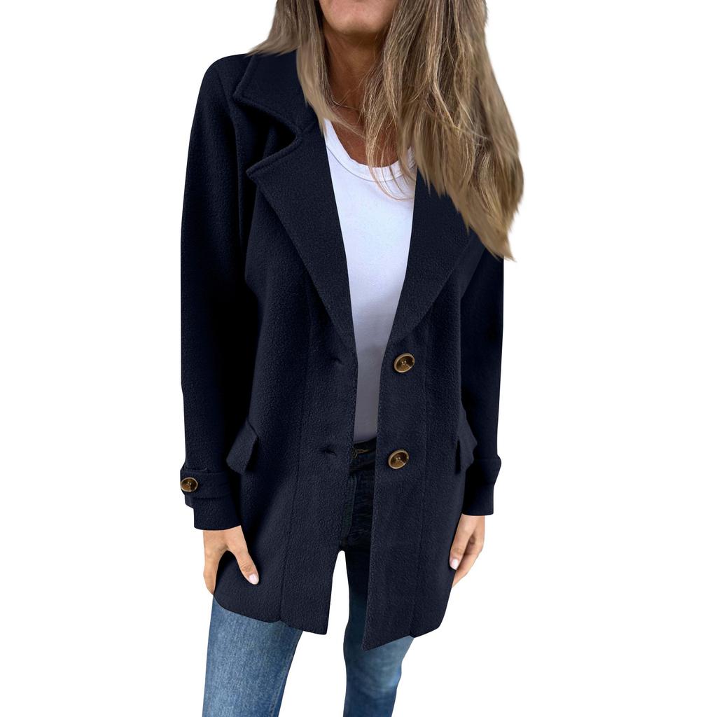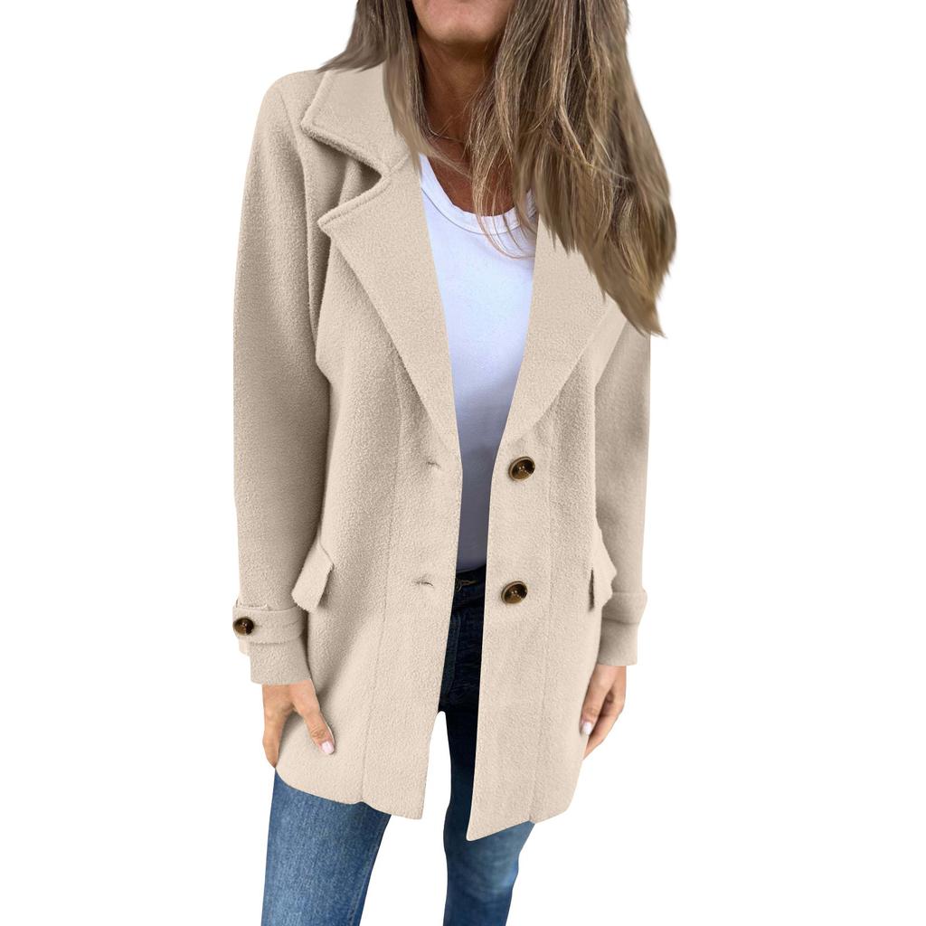 Женское повседневное пальто-жакет с лацканами, однобортное, с длинными рукавами