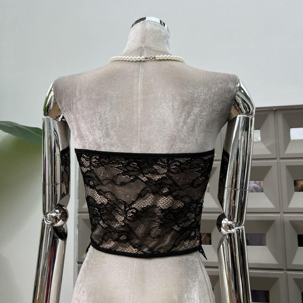 Цветочный Кружевной Длинный Корсет Сетчатый Подвесной Жилет Элегантные Топы Без Рукавов Кроп Весна Лето