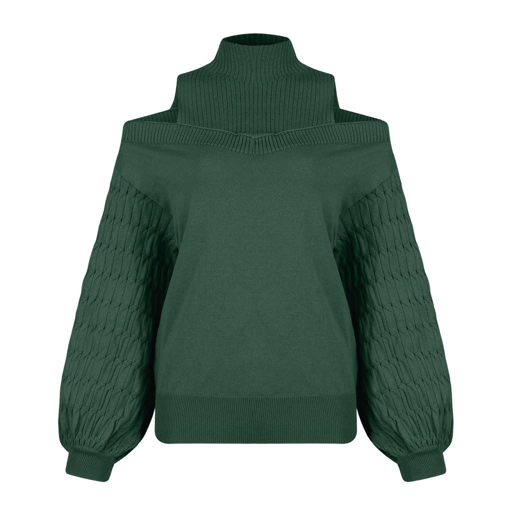 Женский и зимний модный свитер с открытыми плечами, водолазкой, теплый, однотонный, с длинным рукавом