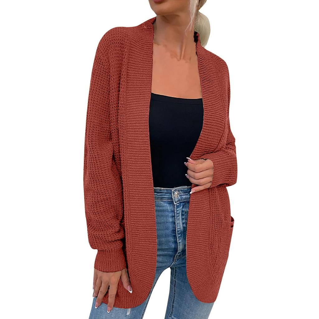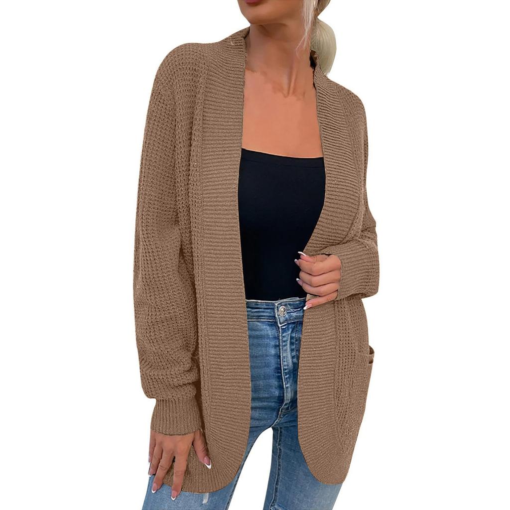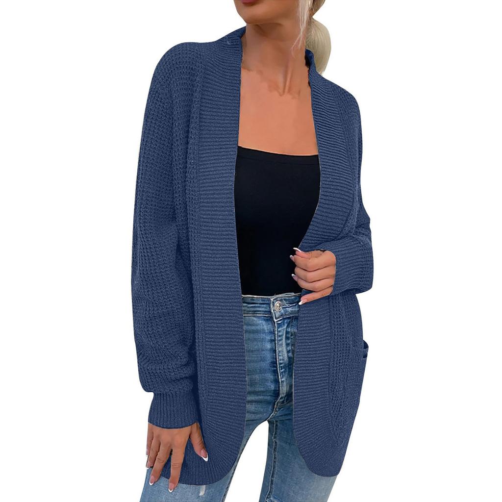 Женская мода Повседневный открытый спереди Длинный рукав Кардиганы крупной вязки Свитера Верхняя одежда Пальто