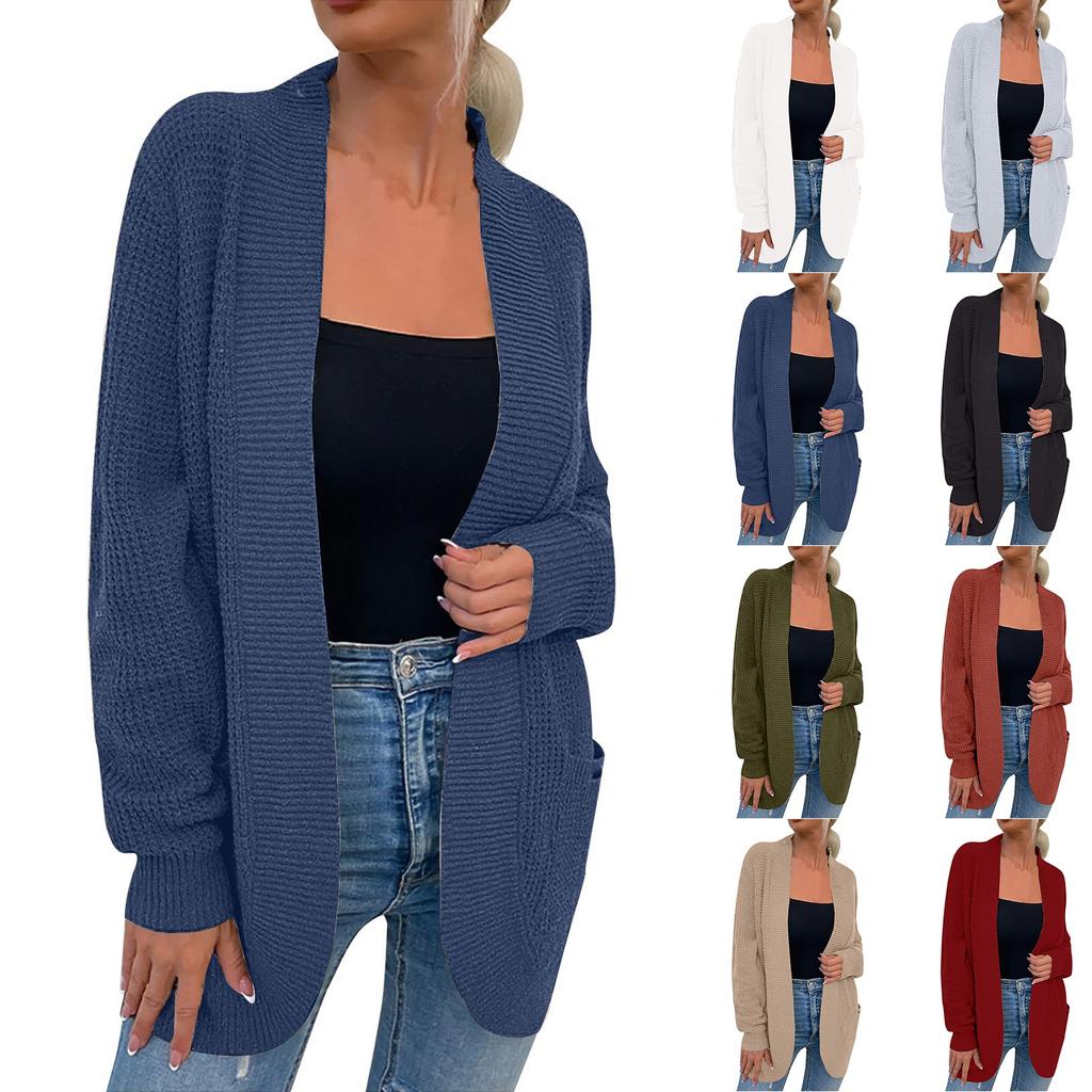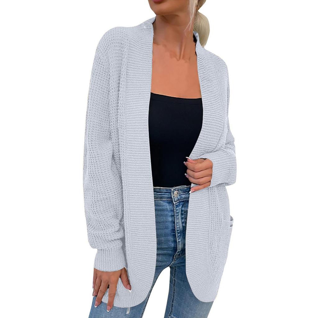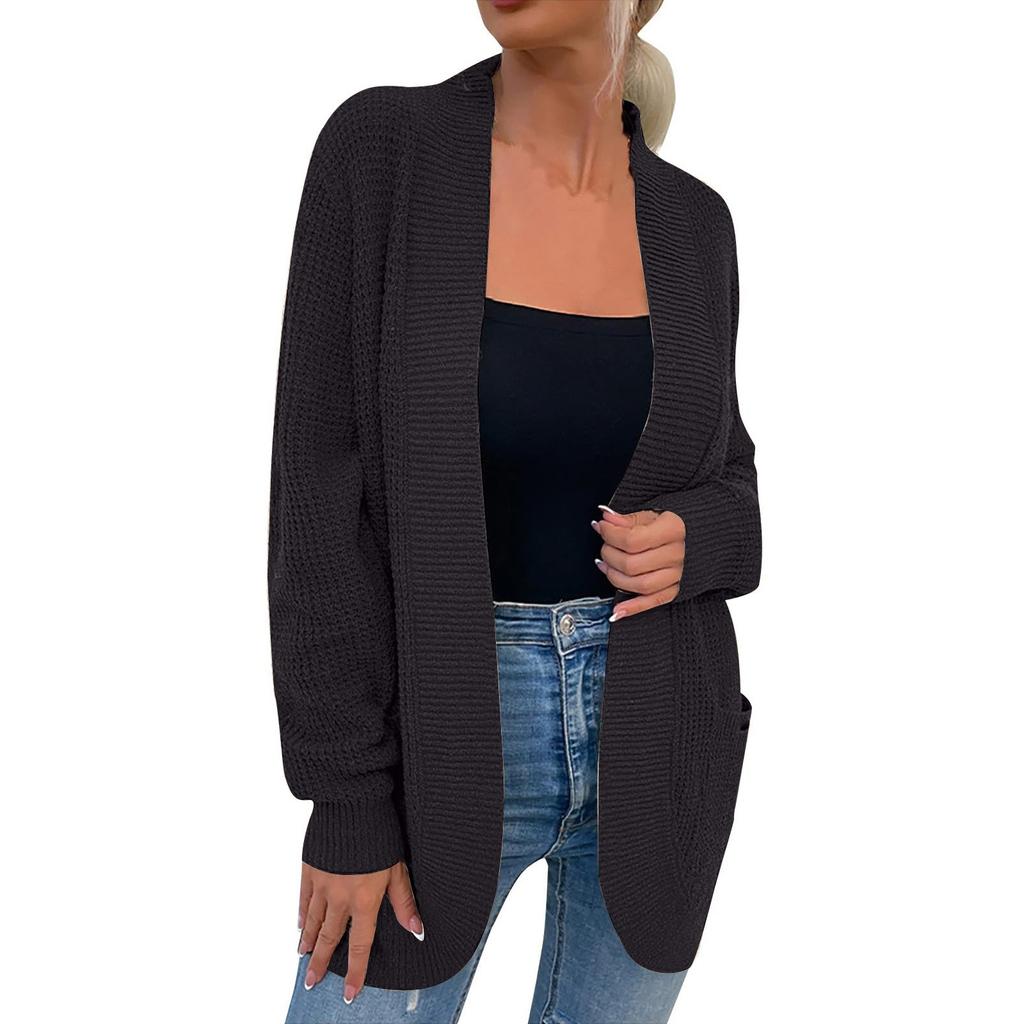 Женская мода Повседневный открытый спереди Длинный рукав Кардиганы крупной вязки Свитера Верхняя одежда Пальто