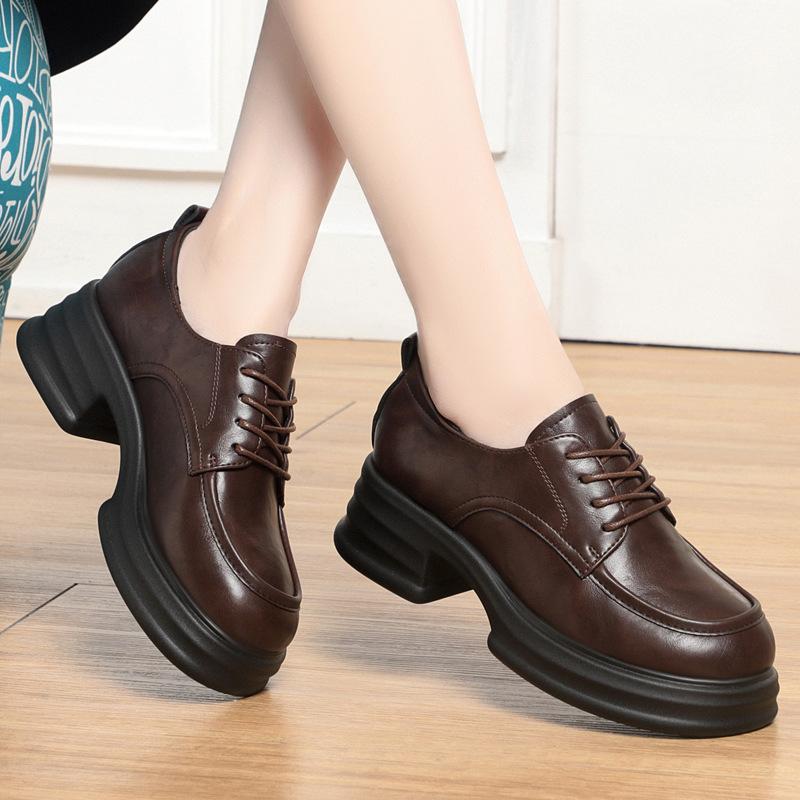 Лоферы на мягкой подошве женские ретро весна и осень новая одинарная обувь британский стиль платформа рабочая обувь маленькие кожаные туфли