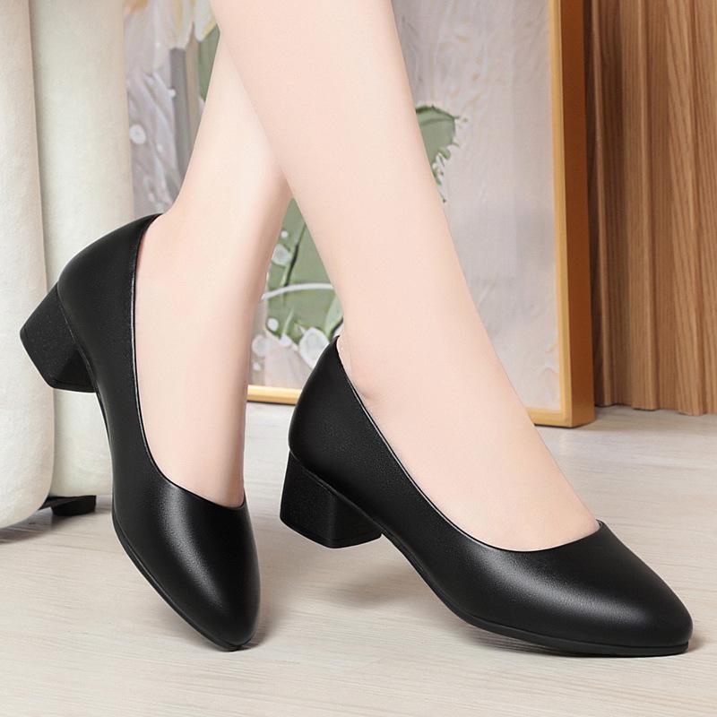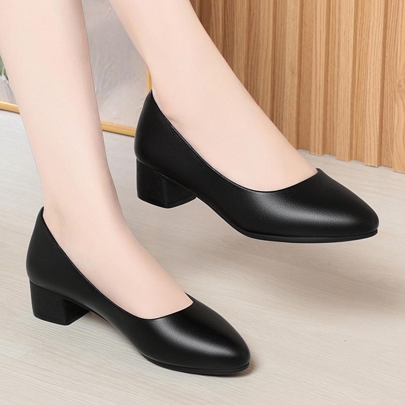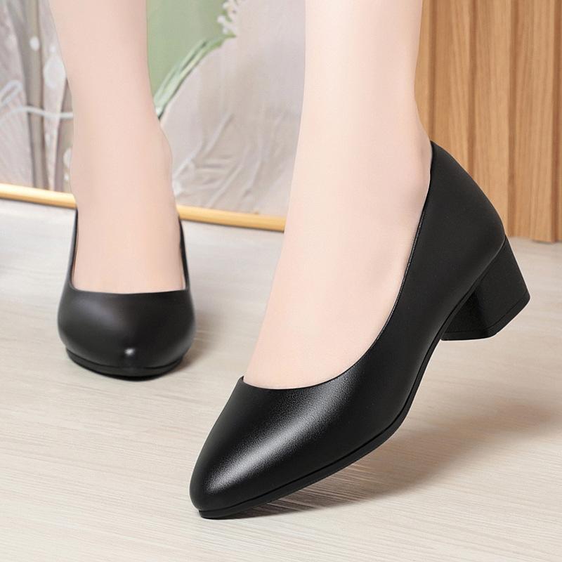 Jiuzhan толстый каблук мягкая подошва рабочая обувь женская черная рабочая женская обувь профессиональная рабочая для поездок женская кожаная обувь большой размер одинарная обувь