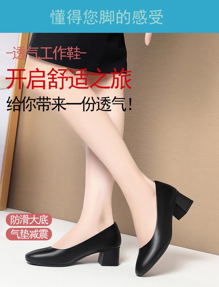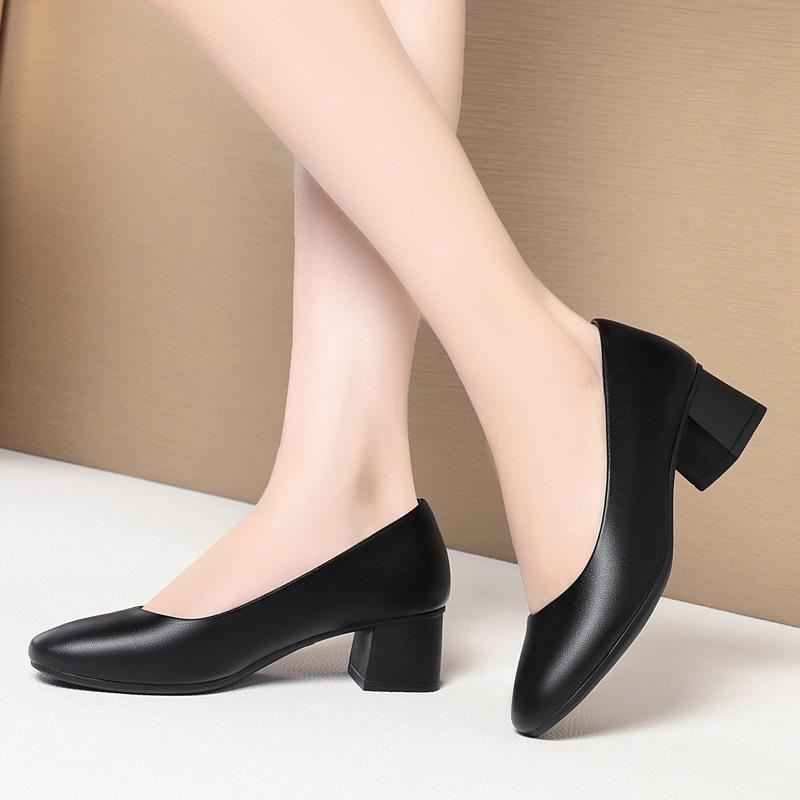 Мягкая кожа рабочая обувь женская толстый каблук профессиональная черная мягкая подошва удобная и нескользящая средний каблук