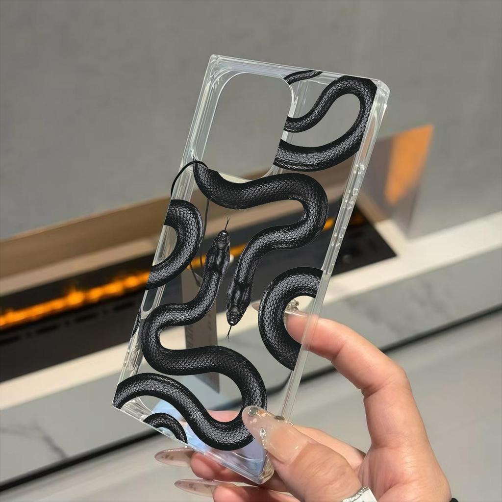 Прозрачный квадратный чехол-накладка для iPhone 16 ProMax 15 Plus 14 Pro Max 13 12 11, защита от окисления, рисунок питона Black Mamba